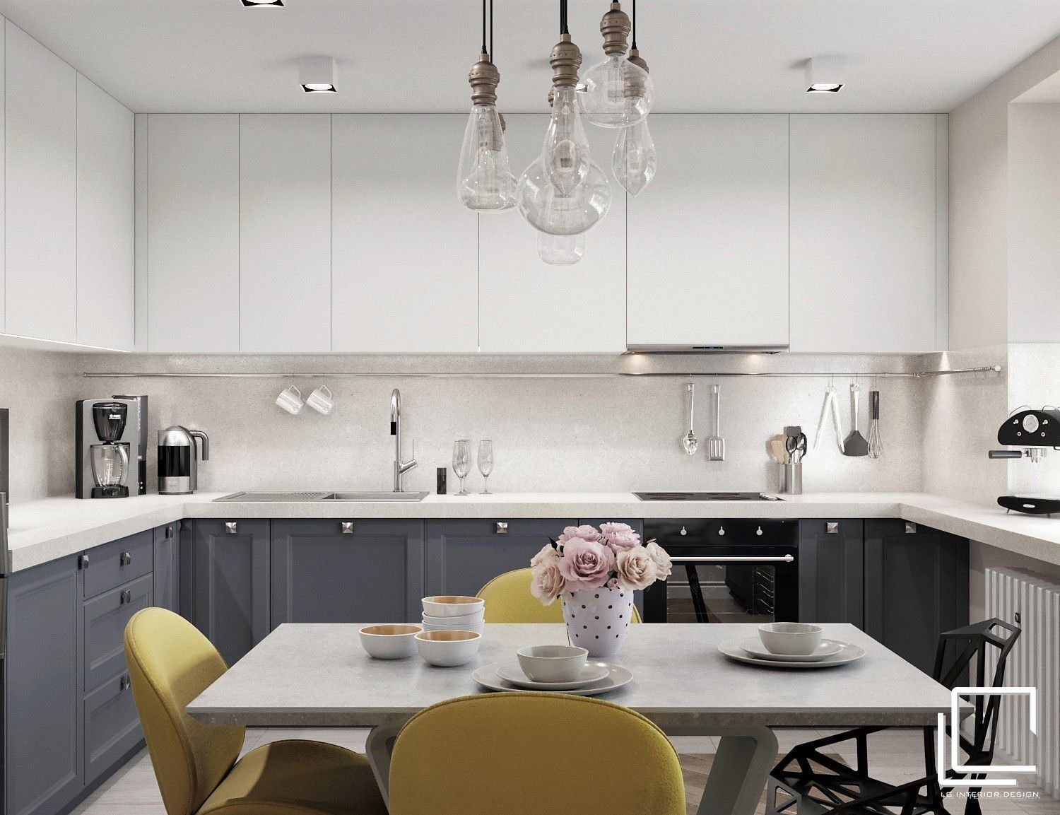Кухня в серо-белых тонах