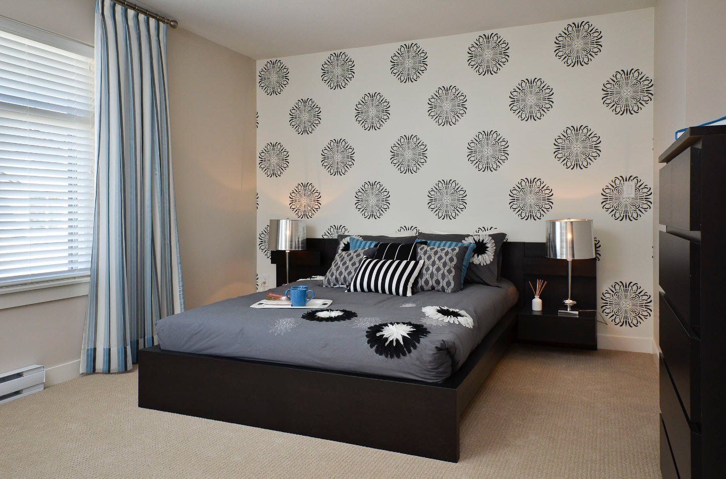 Черно белая спальня
