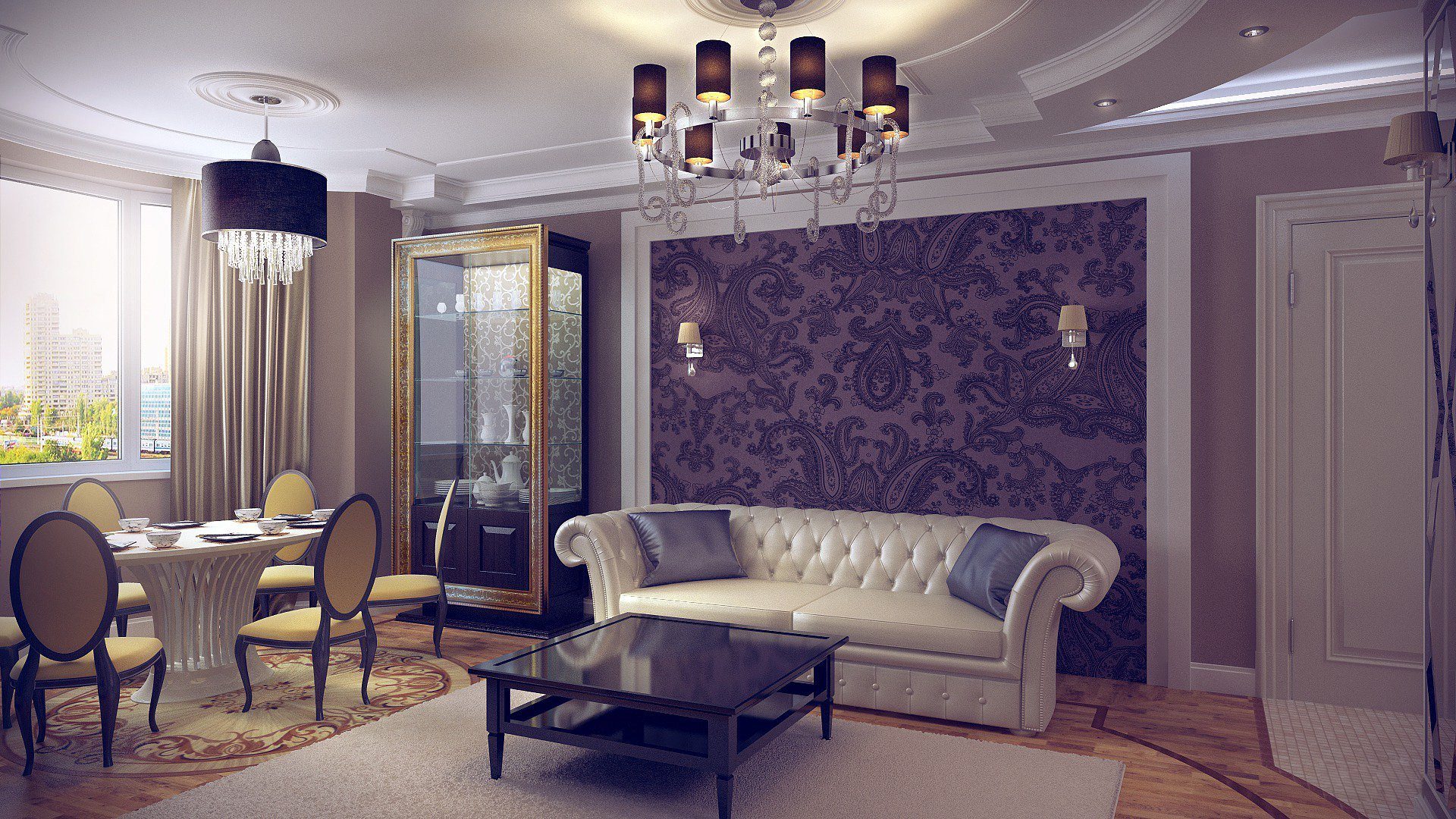Линкруста в интерьере гостиной в стиле Неоклассика