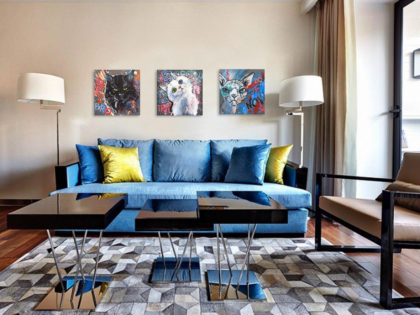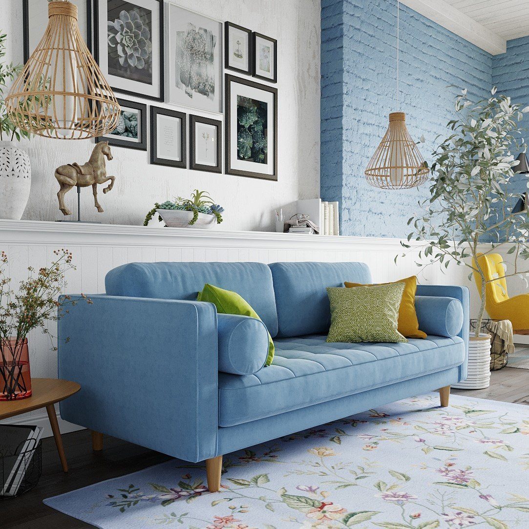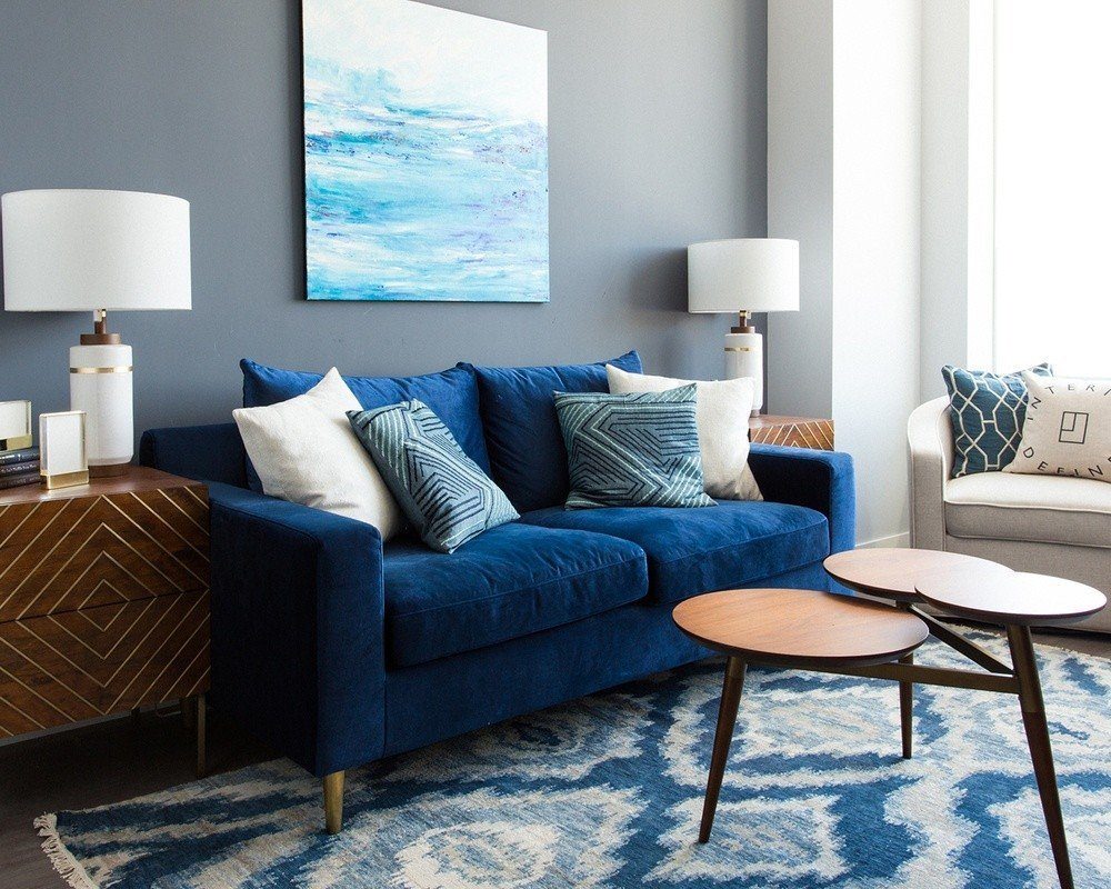 Интерьер гостиной в светлых тонах с яркими акцентами