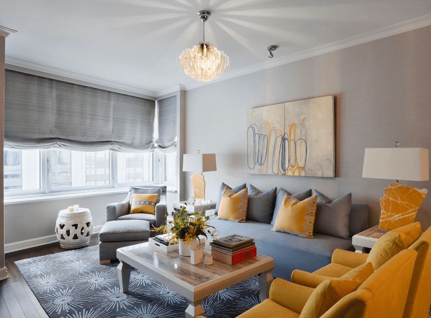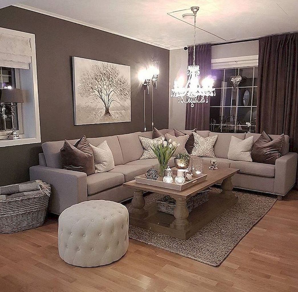 Гостиная в бежево коричневых тонах с оранжевыми акцентами