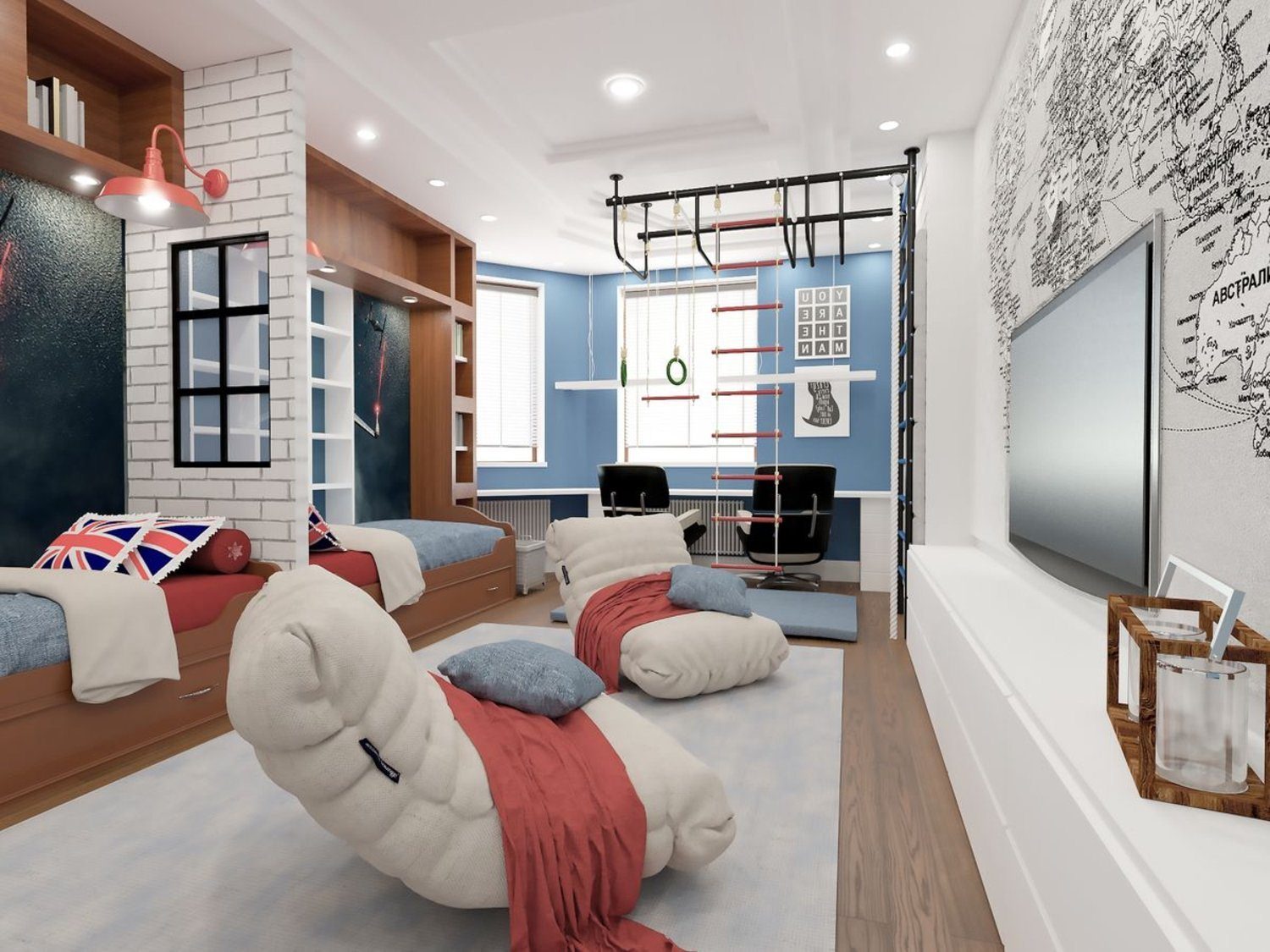 Интерьер детской комнаты для двоих мальчишек 15кв м