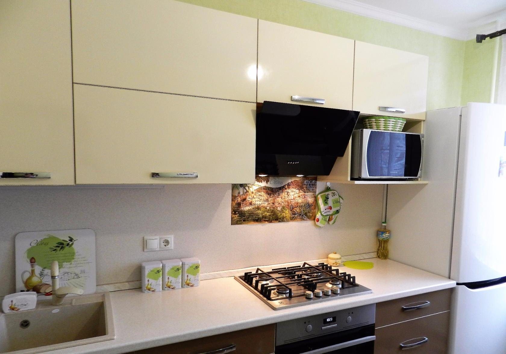 Кухонный гарнитур для маленькой кухни с микроволновкой
