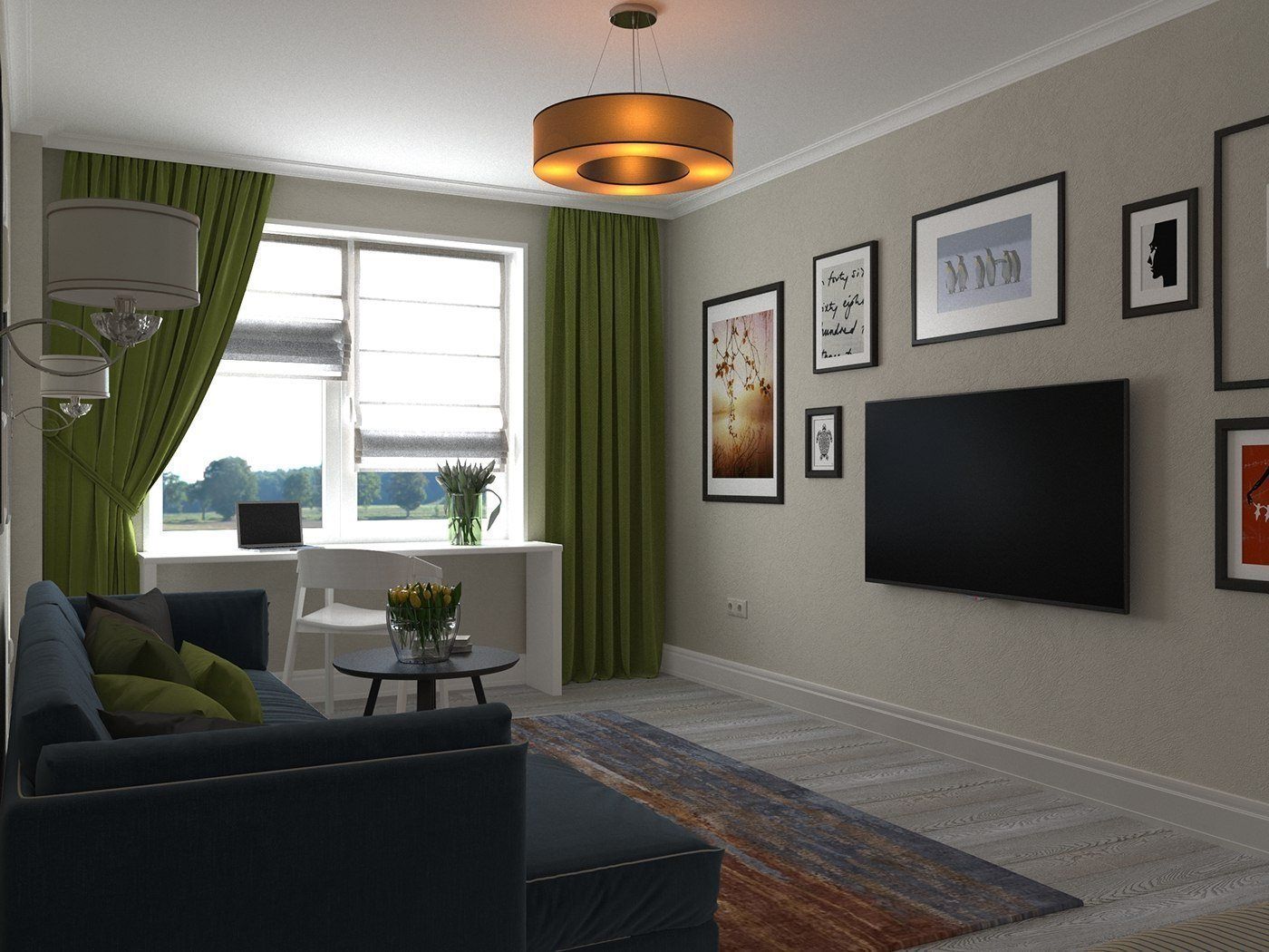 Гостиная спальня с рабочим местом