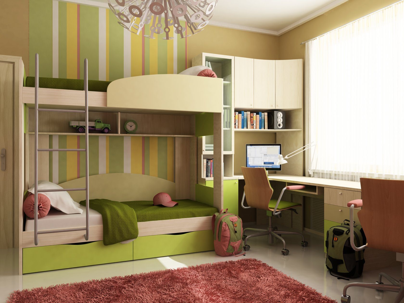 Детская комната для двоих с двухъярусной кроватью