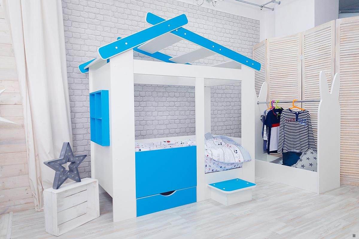 Детская кровать-домик с ящиком, белый, 800 × 1600 мм