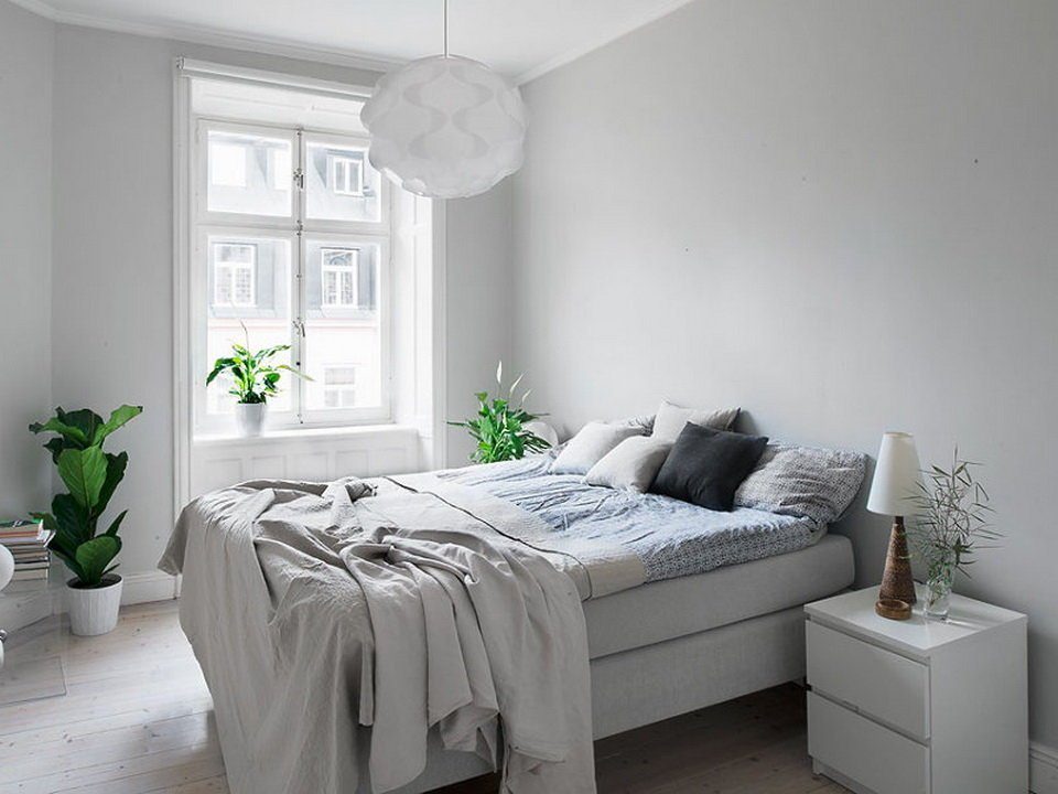 Серая спальня в скандинавском стиле