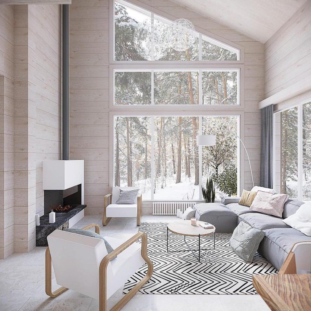 Интерьеры в домах из клееного бруса в скандинавском стиле