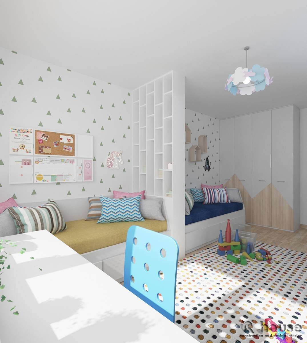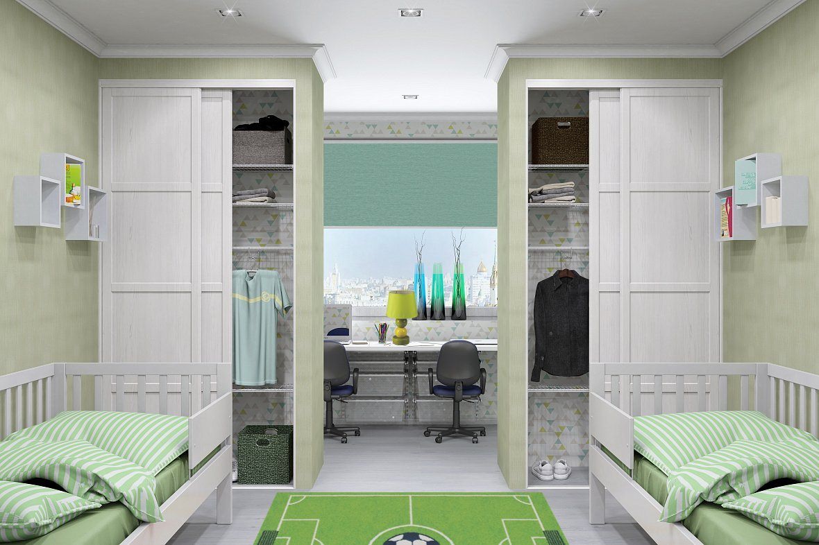 Комната для двоих разнополых подростков 20 кв.м с перегородкой