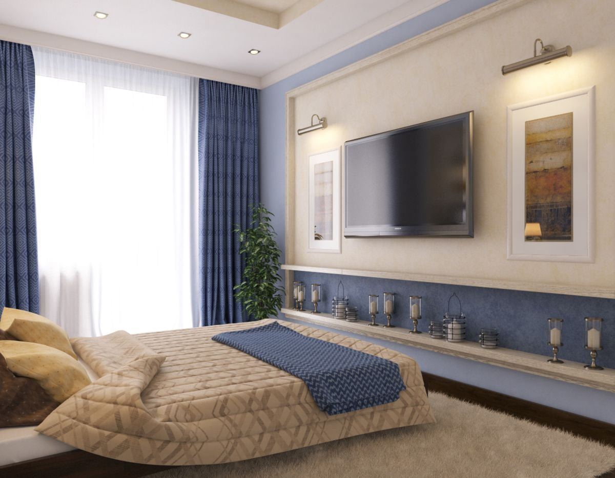 Интерьер спальни с телевизором