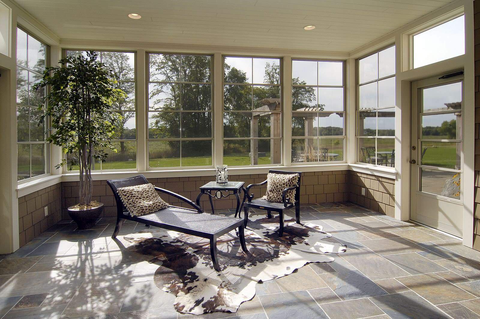 Веранда с высокими окнами