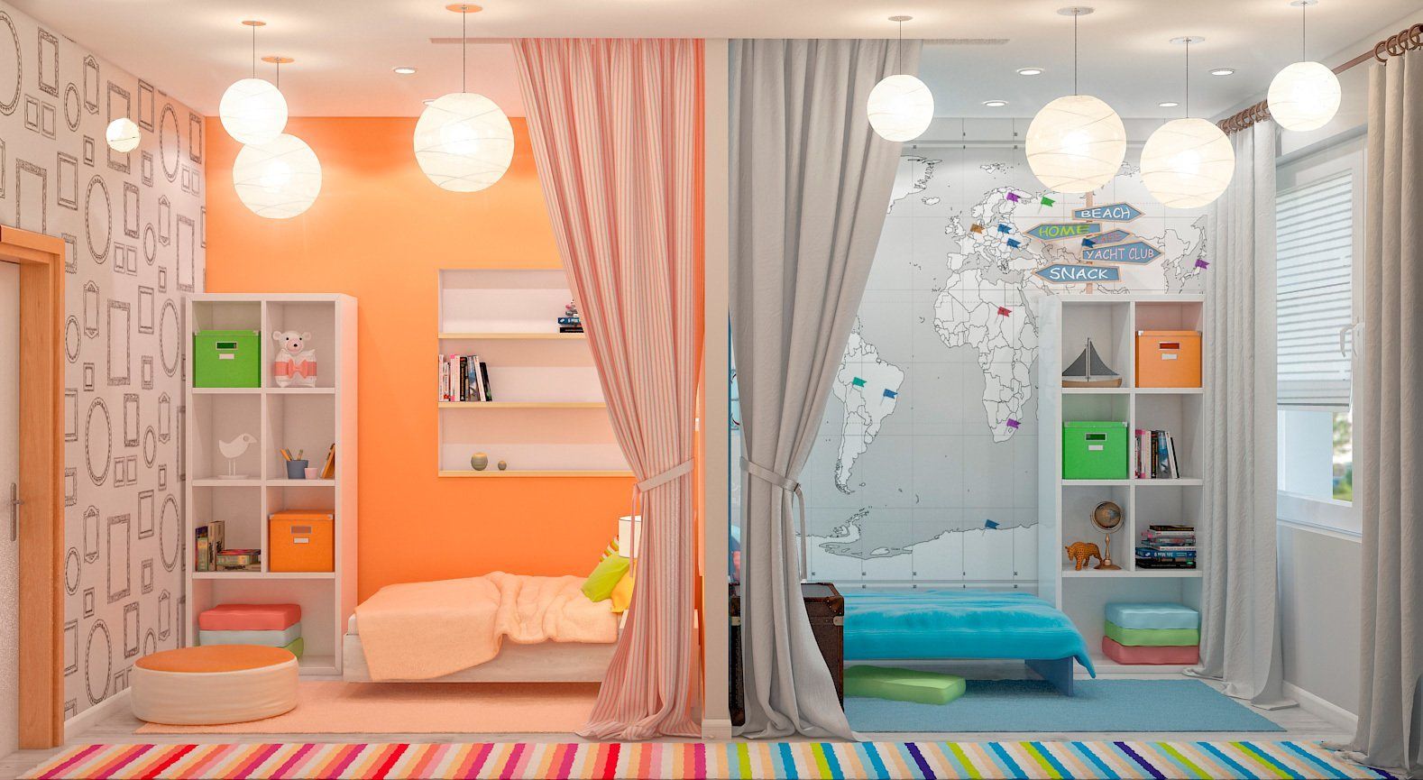 Зонирование детской для мальчика и девочки