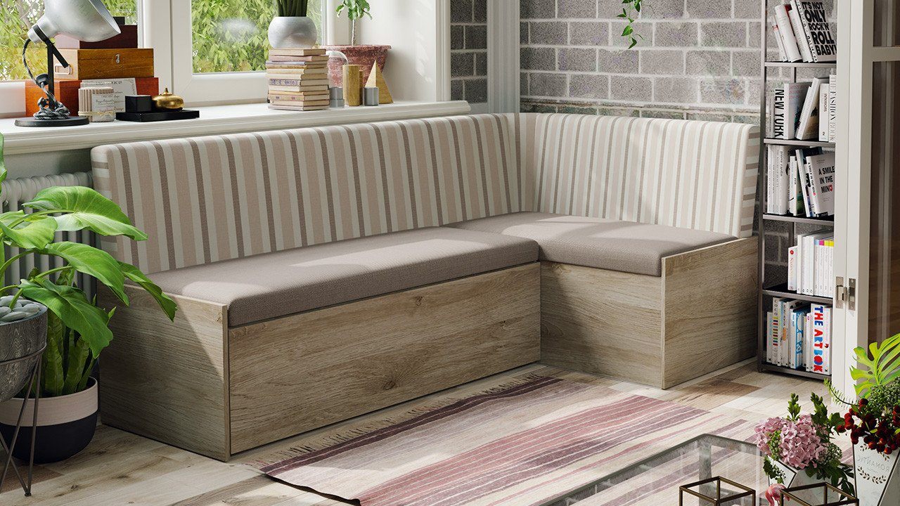 Скамья угловая со спальным местом «Париж» (Баттл рок/ полоса бежевая)