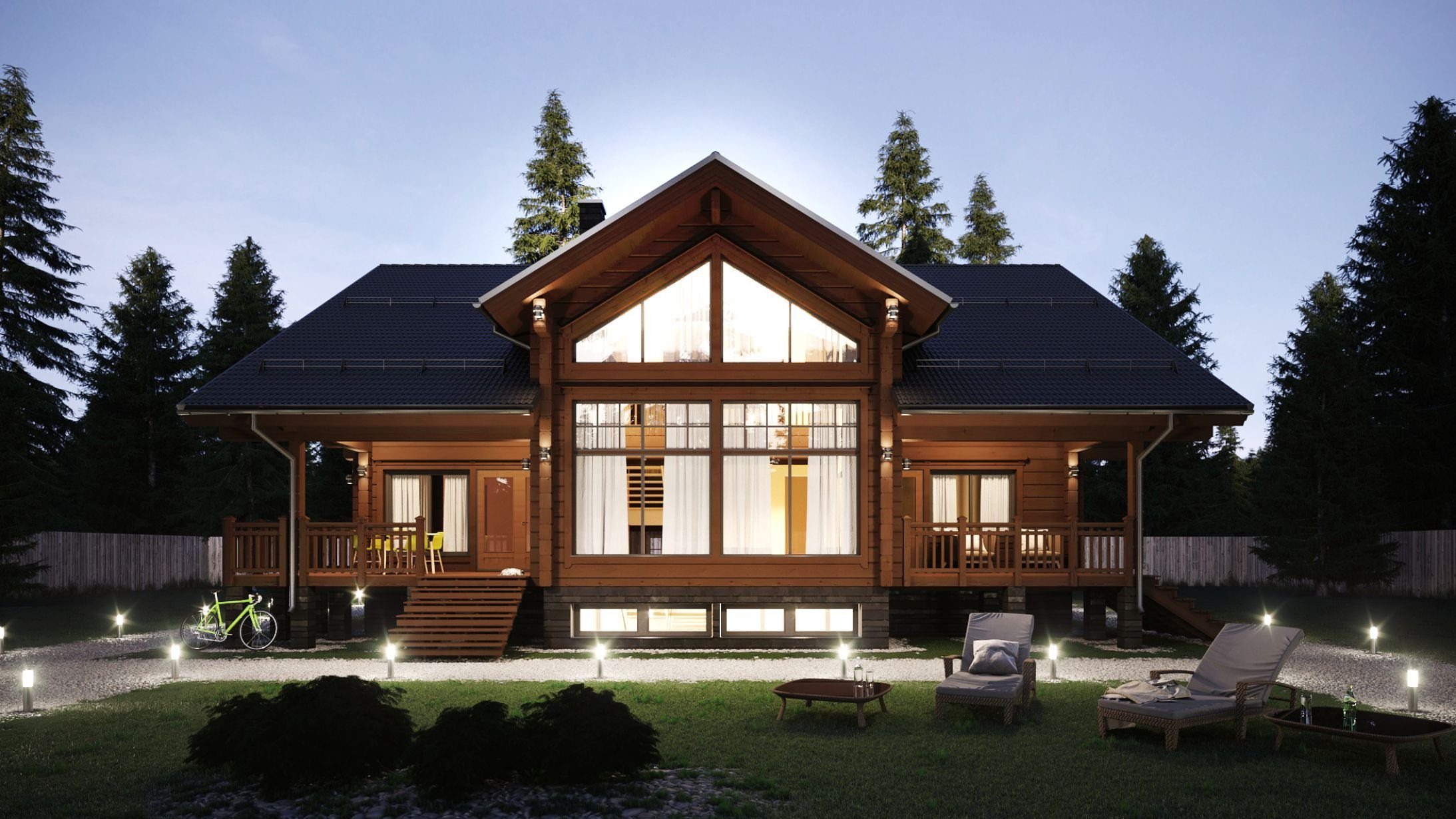 Одноэтажный дом в стиле лофт с панорамными окнами