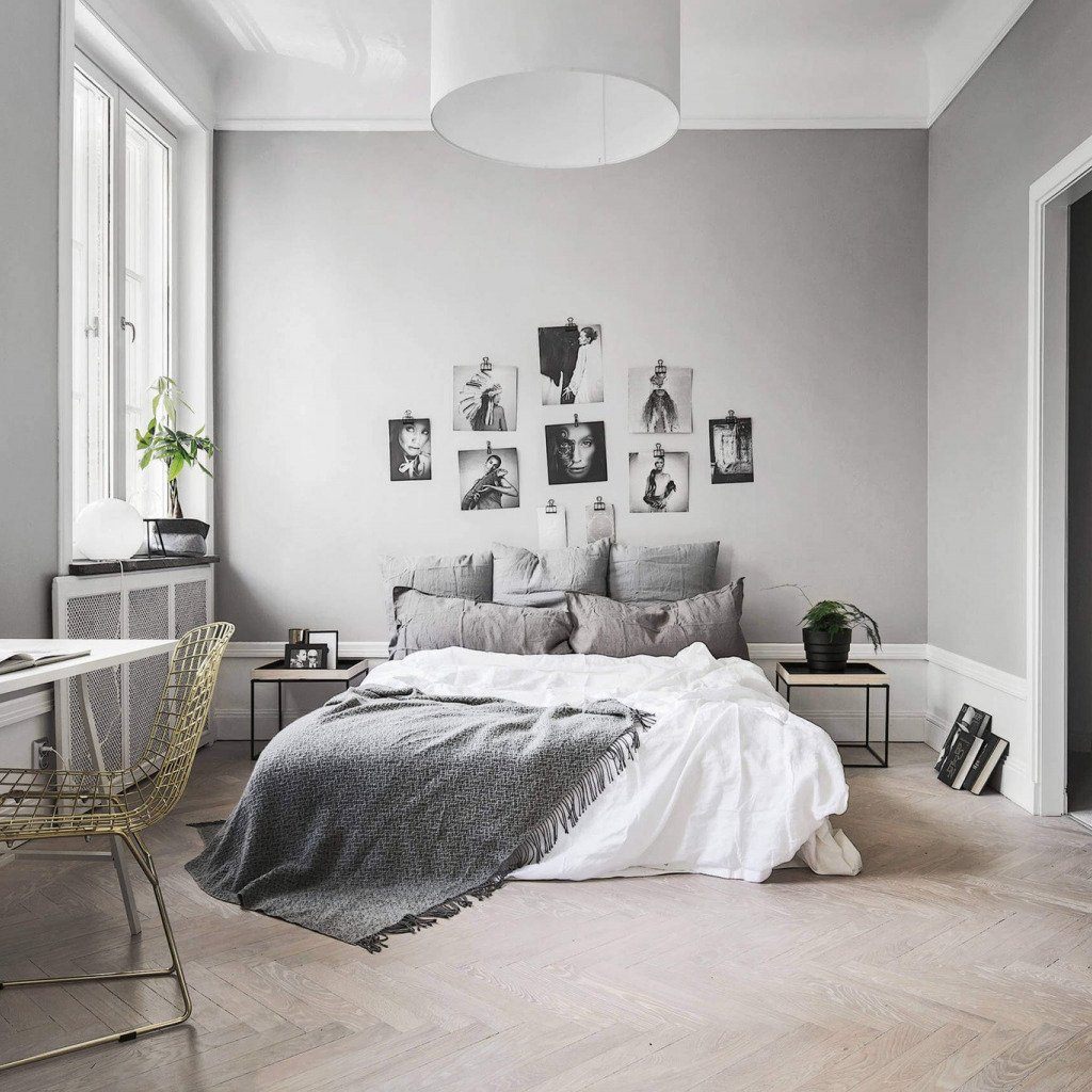 Дизайн комнаты в серо белых тонах