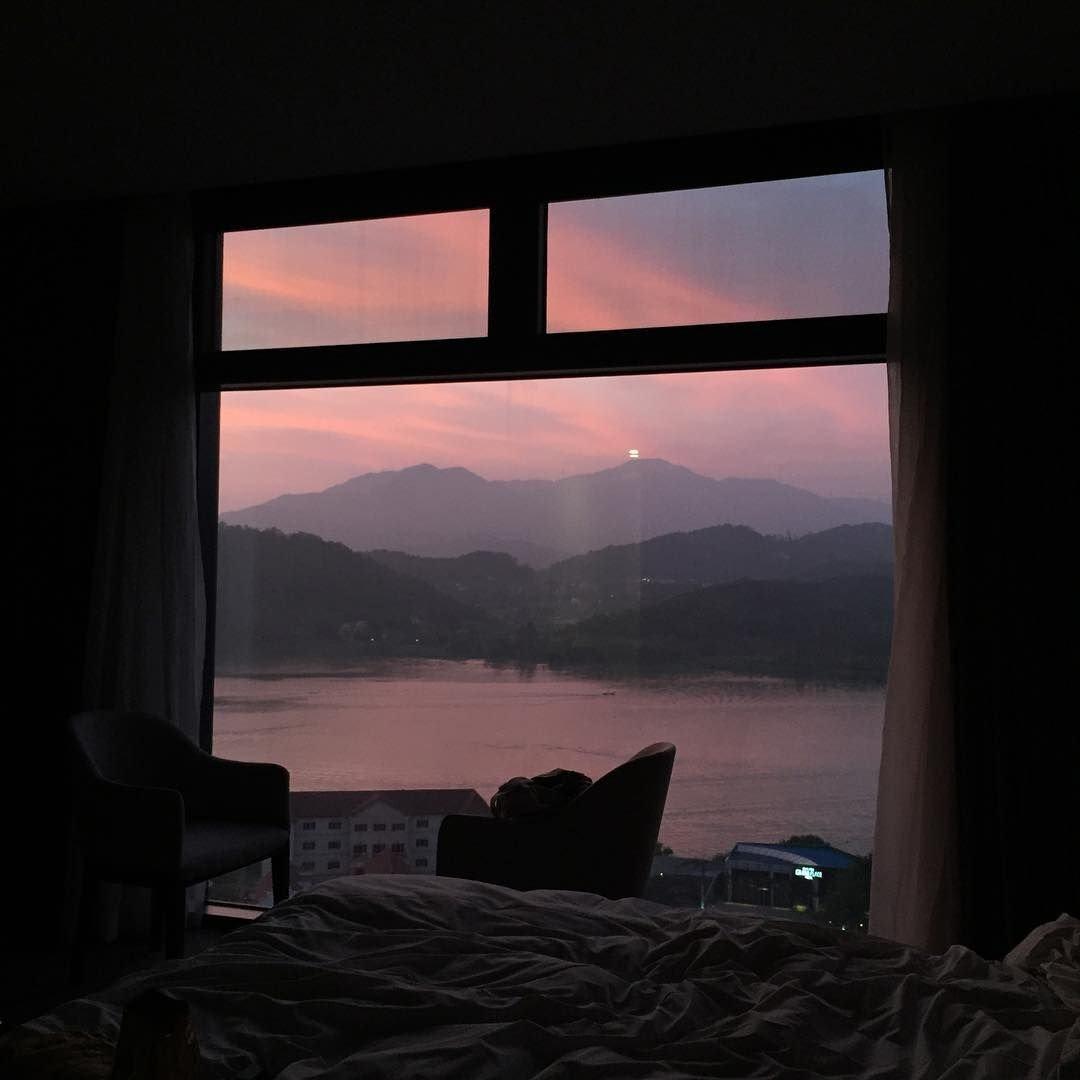 Комната с закатом в окне
