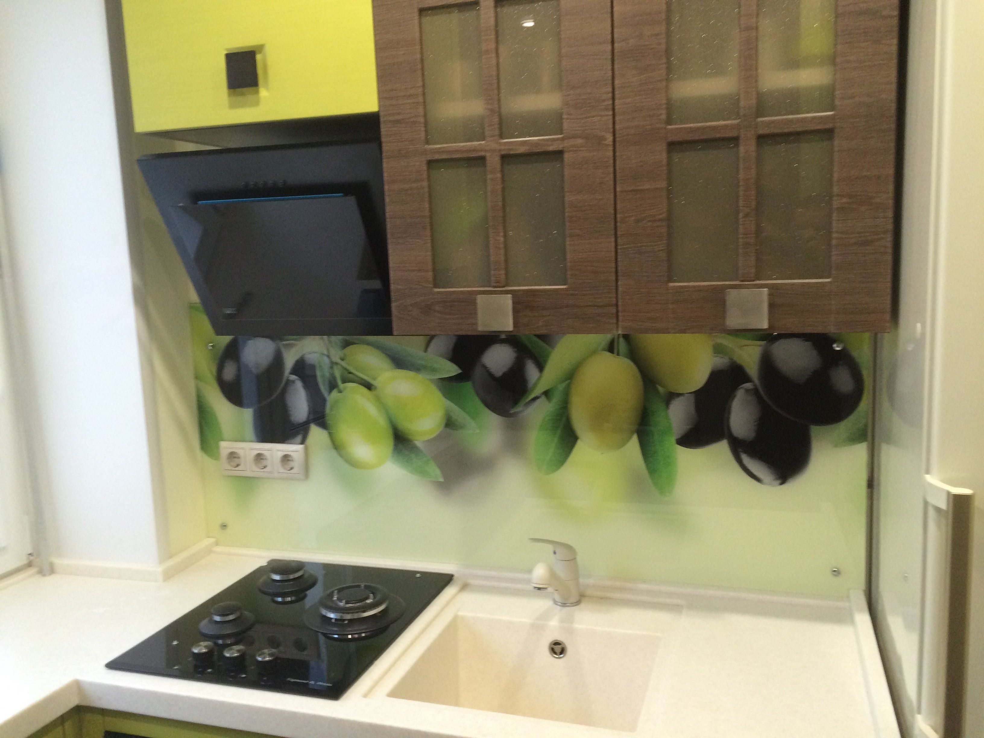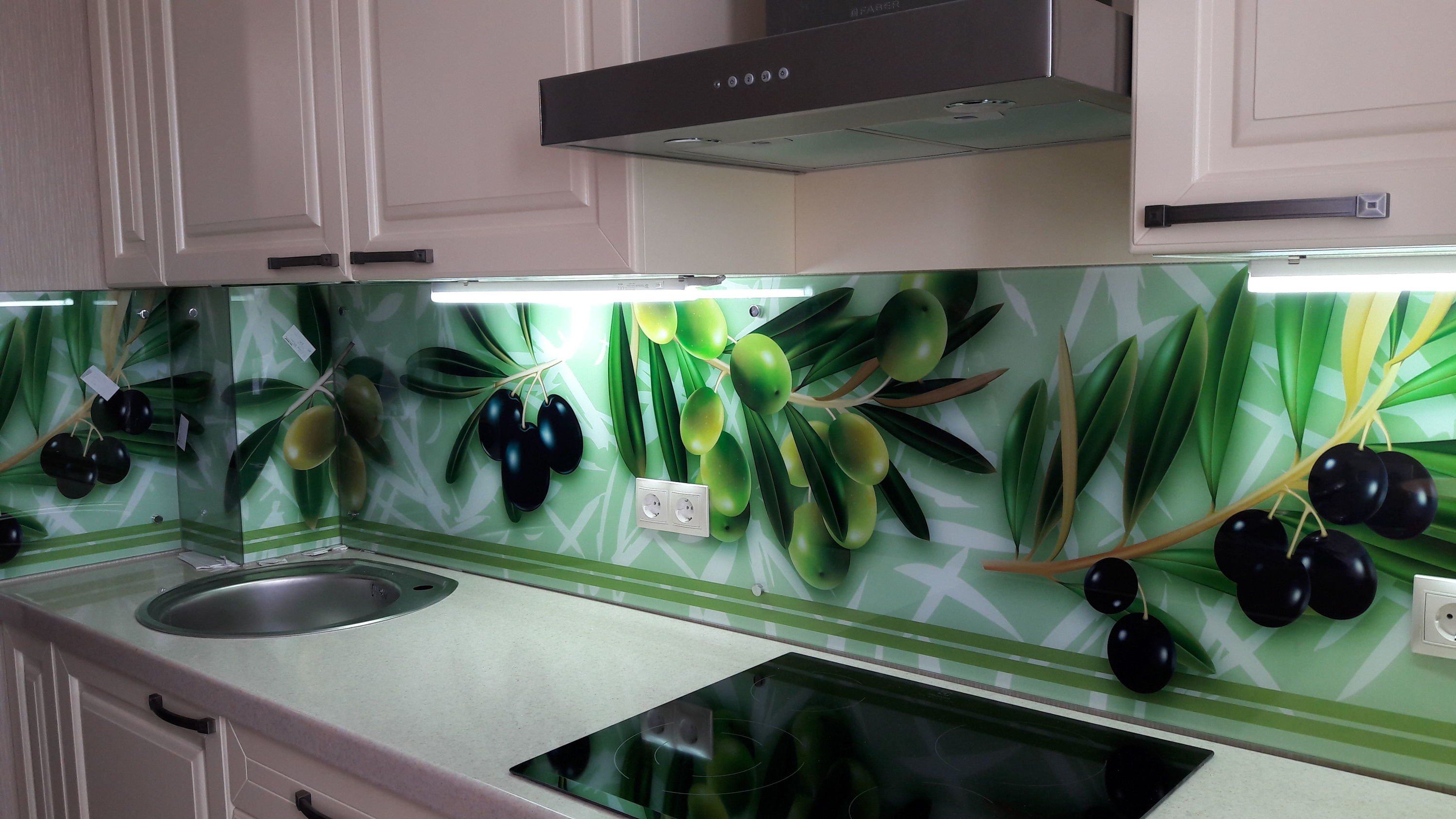 Стеклянный фартук для кухни оливки