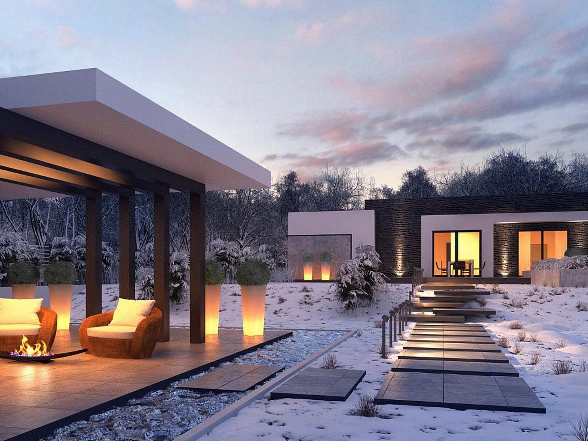 Дом в стиле лофт одноэтажный с односкатной крышей