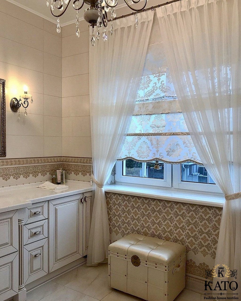 Французские шторы в ванной комнате