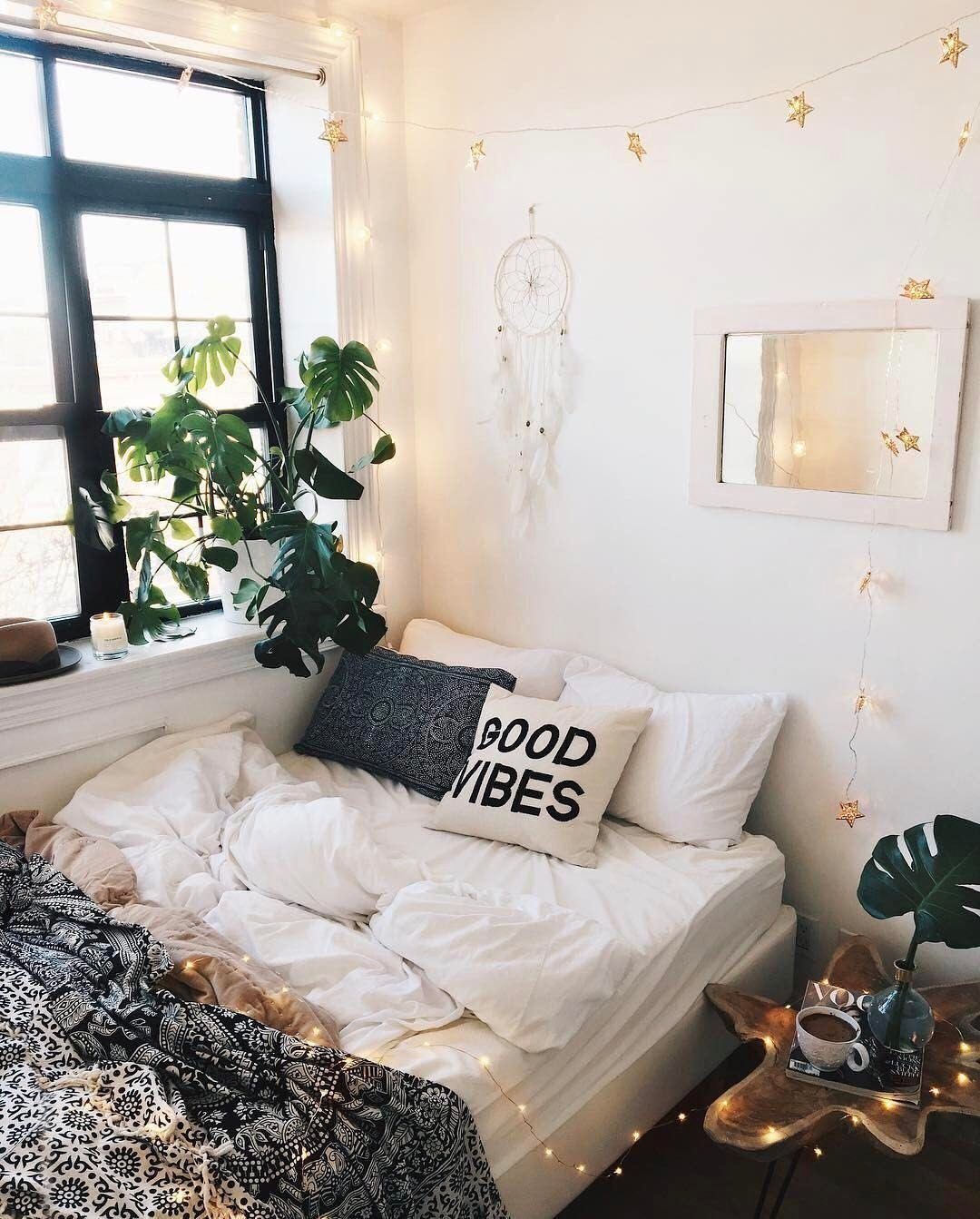 Гирлянда в интерьере спальни