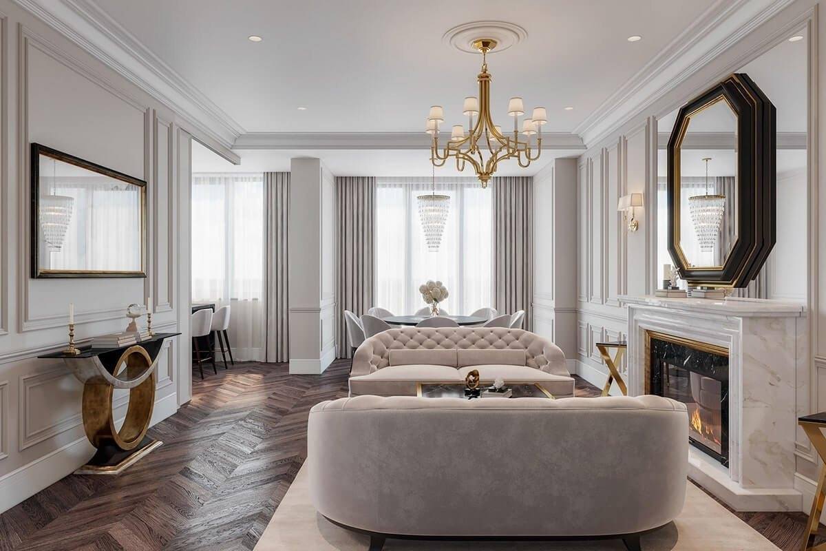 Интерьер в классическом стиле в трехкомнатной сталинской квартире