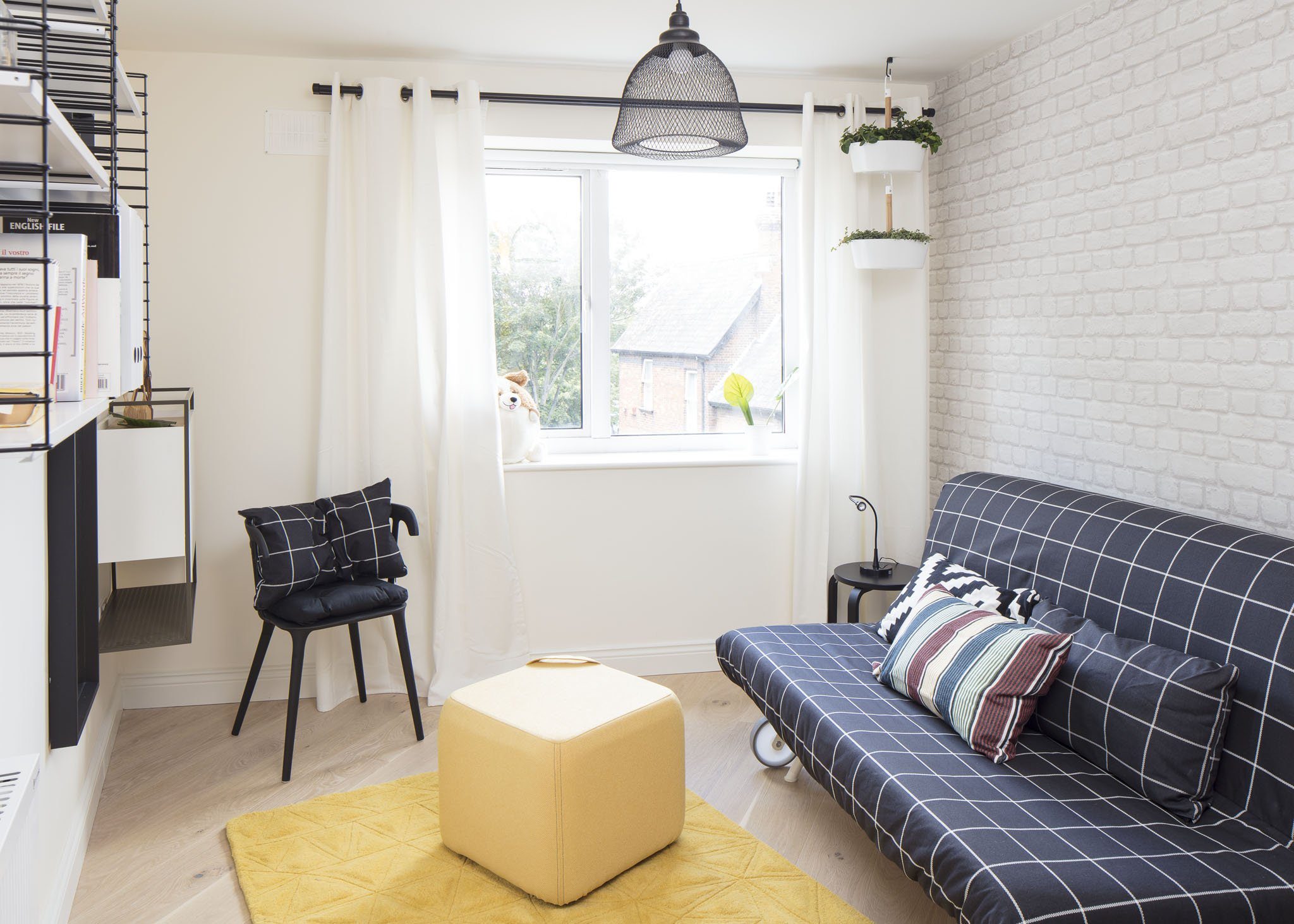 Узкая спальня в скандинавском стиле