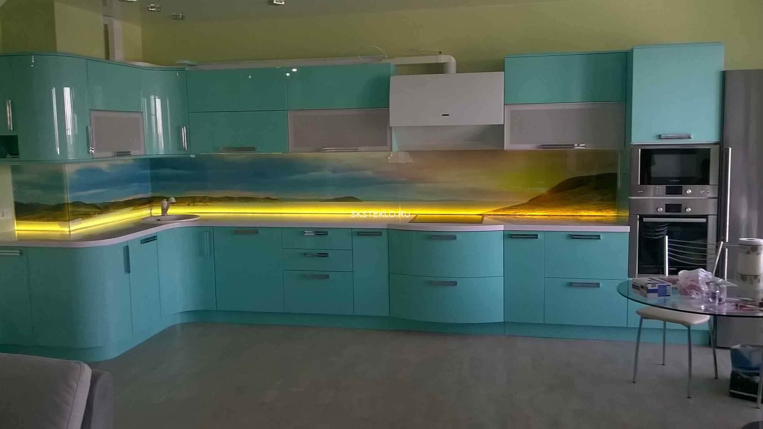 Стеклянный фартук с подсветкой