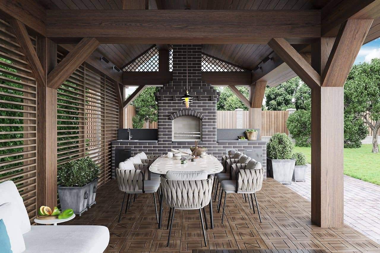 Беседка с патио и зоной барбекю