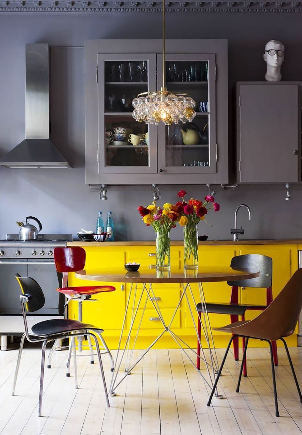 Интерьер кухни в квартире 8 кв.м в сочетании голубого и коричневого