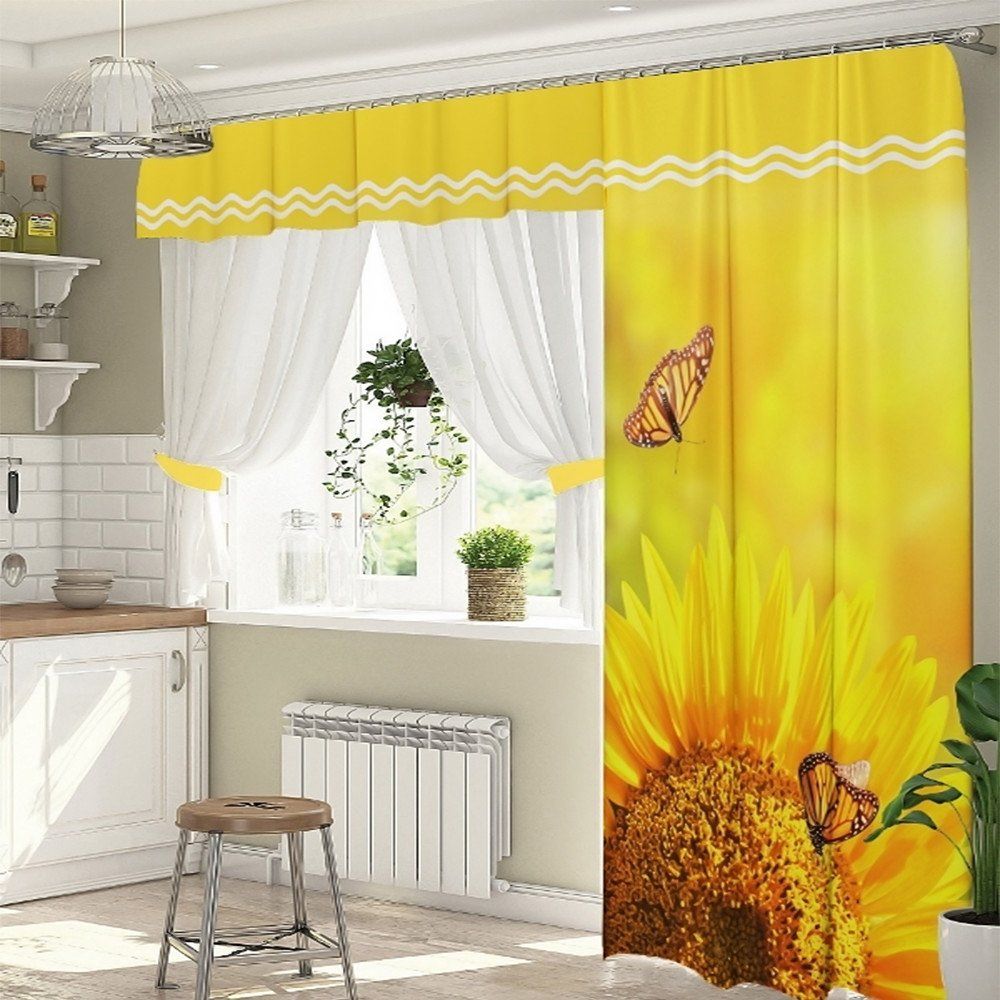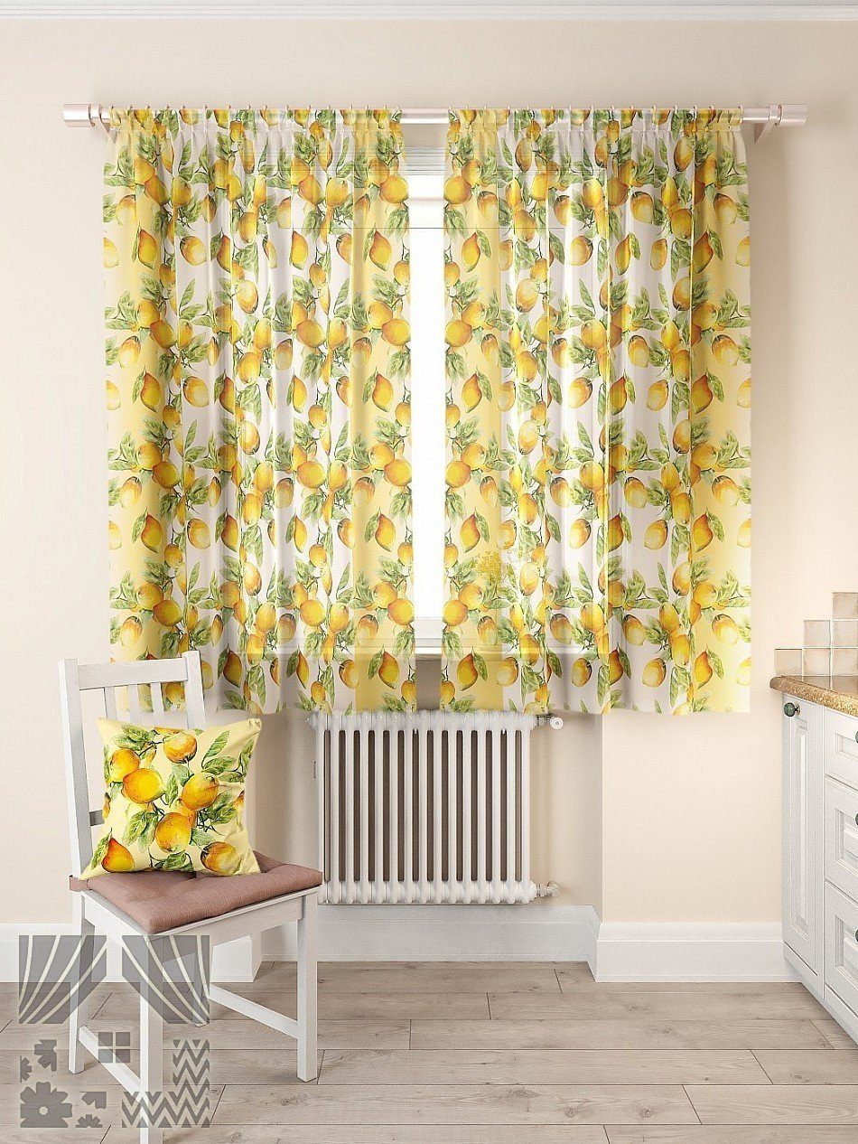 Тюли и занавески на кухню желтые