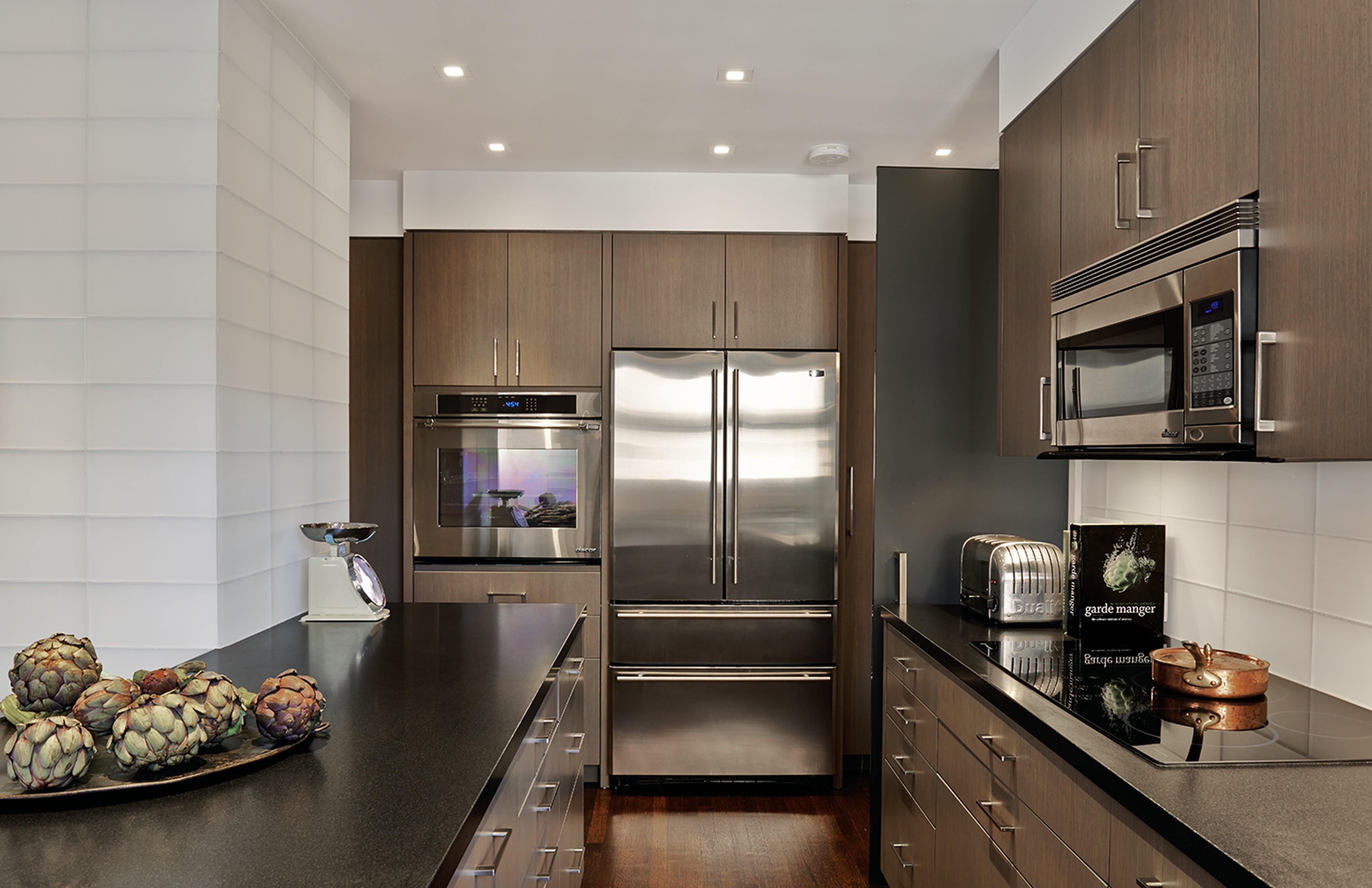 Современная кухня с холодильником
