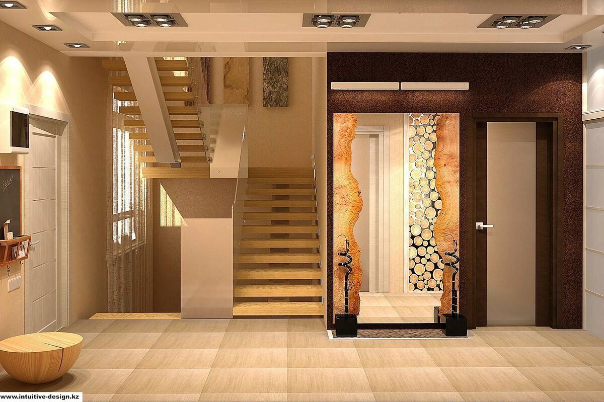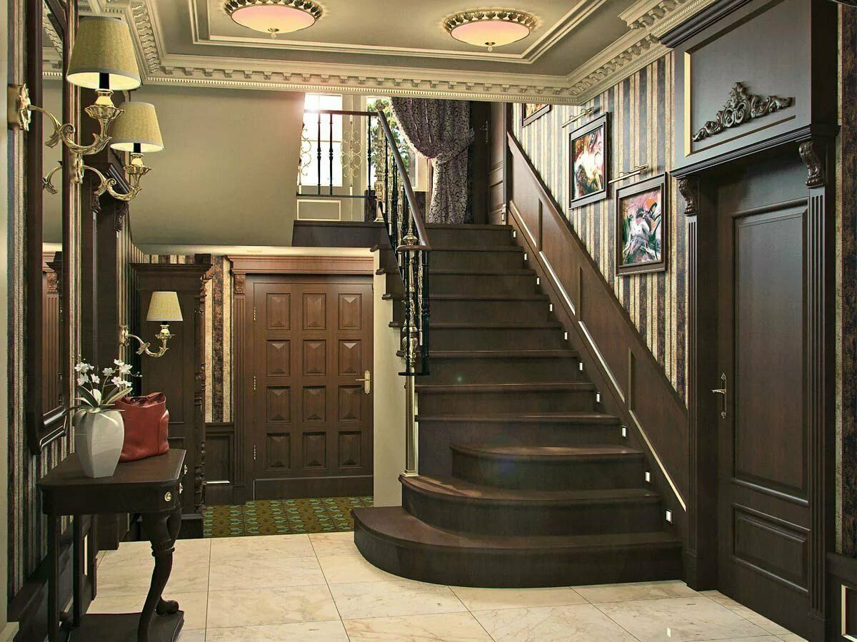 Интерьер прихожей с лестницей