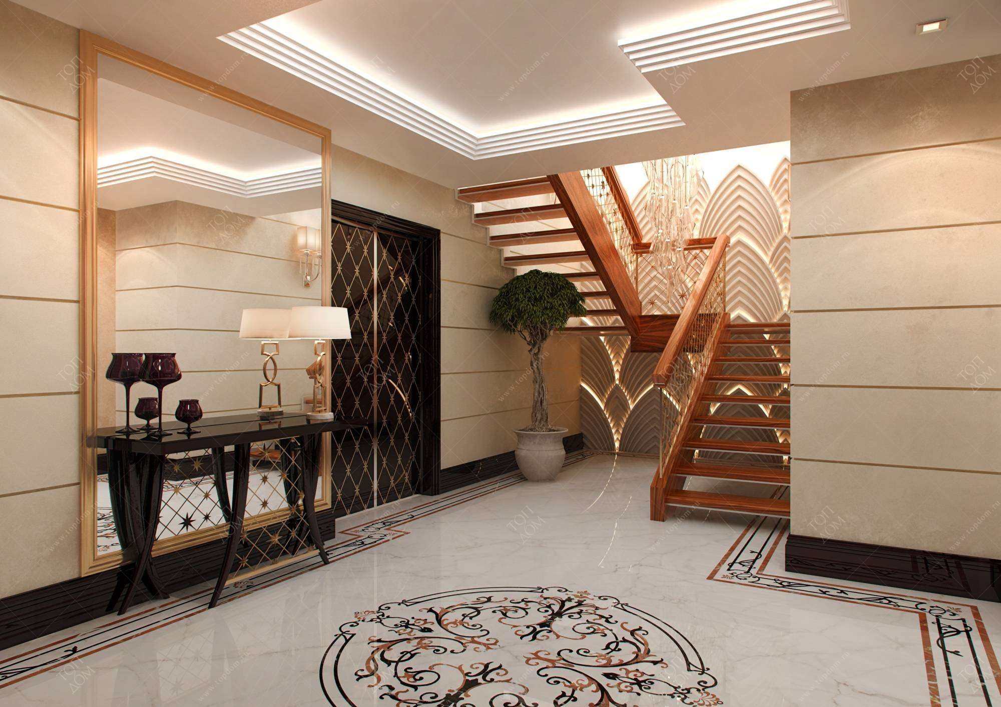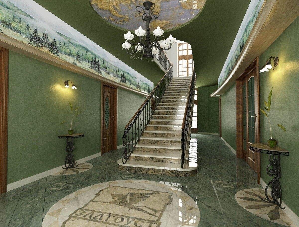Отделка холла с лестницей