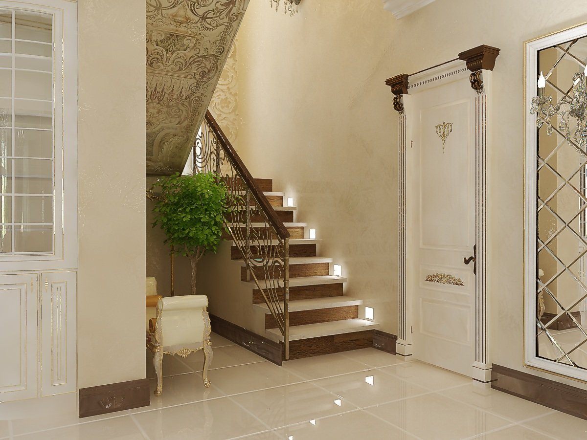 Интерьер холла с лестницей