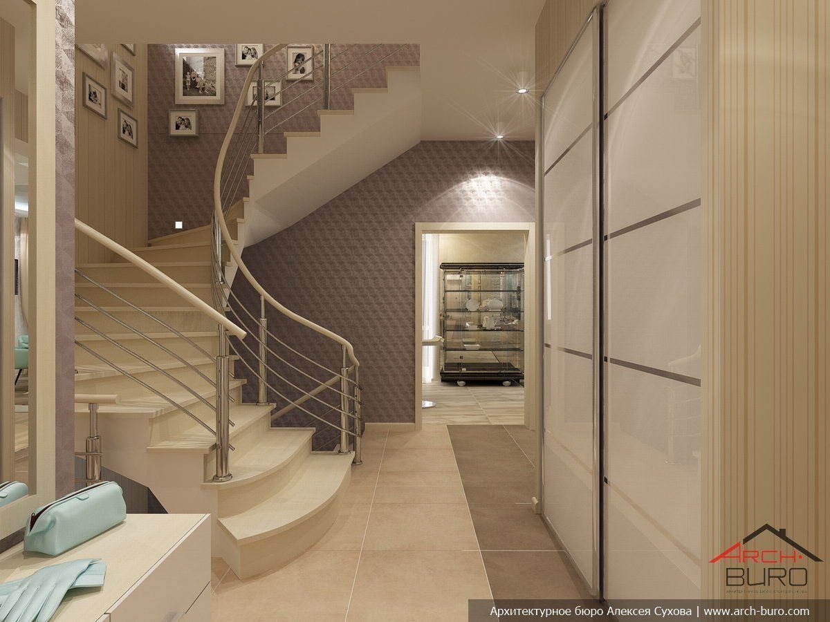 Прихожая с лестницей в частном доме