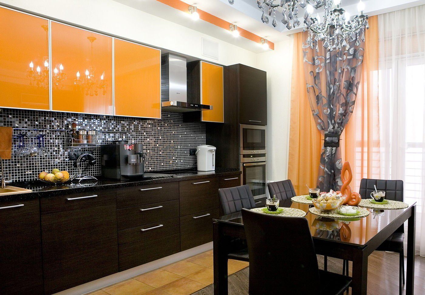 Фартук для кухни цвета кухни оранжевая с чёрным