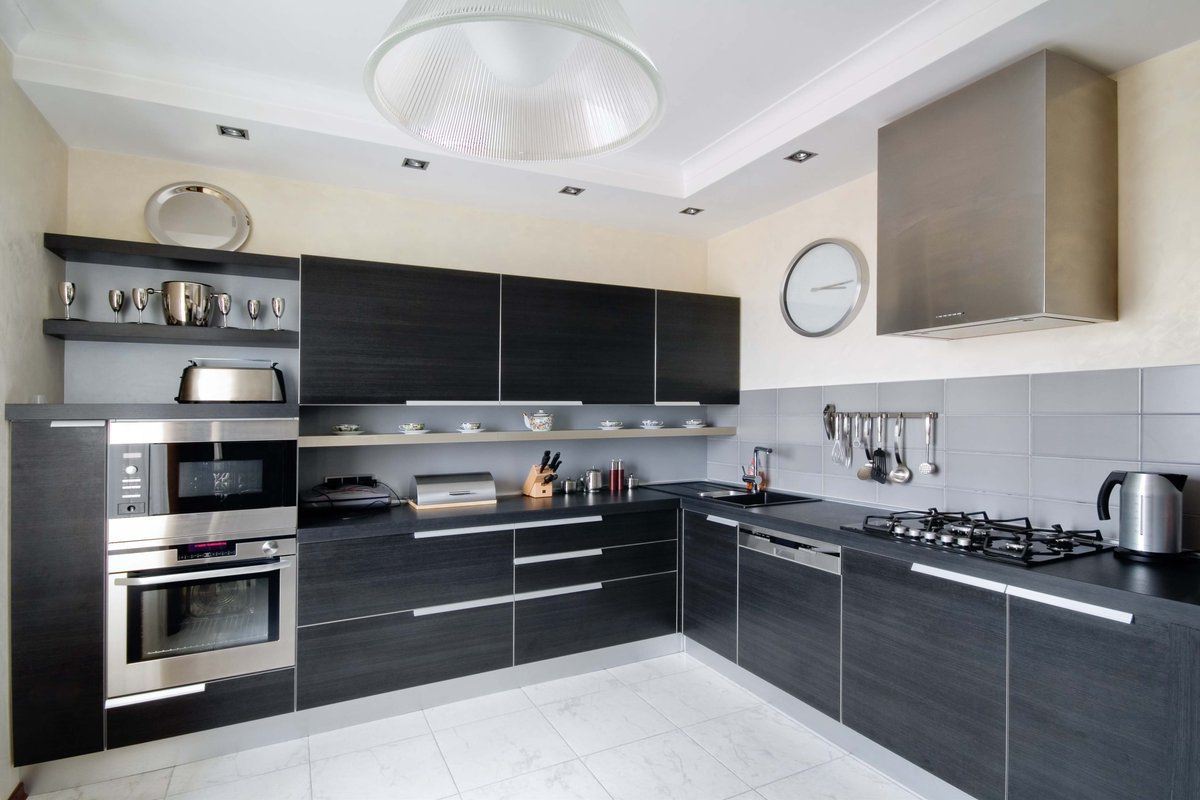 Угловая кухня с встроенной бытовой техникой