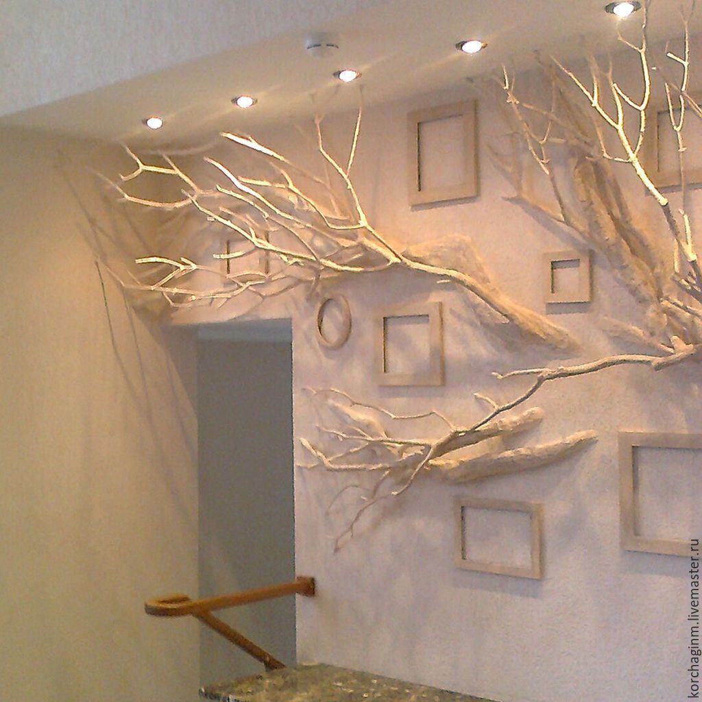 Ветки на стене в интерьере