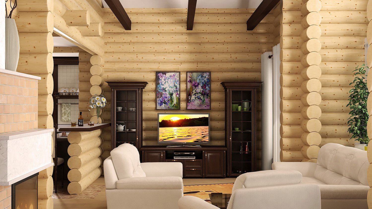Интерьер дом из оцилиндрованного бревна внутри дома