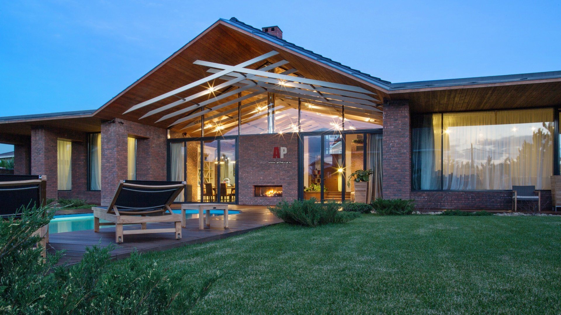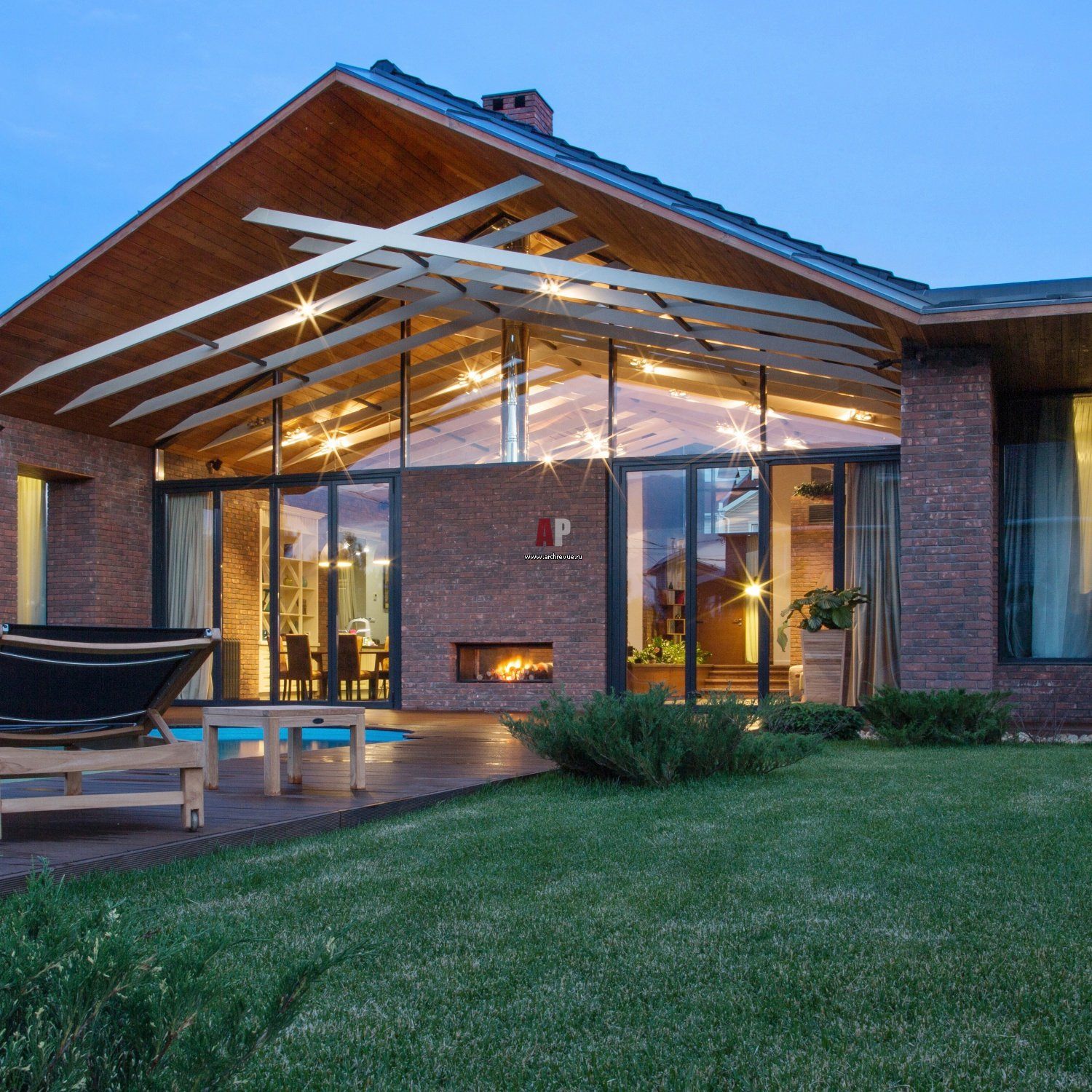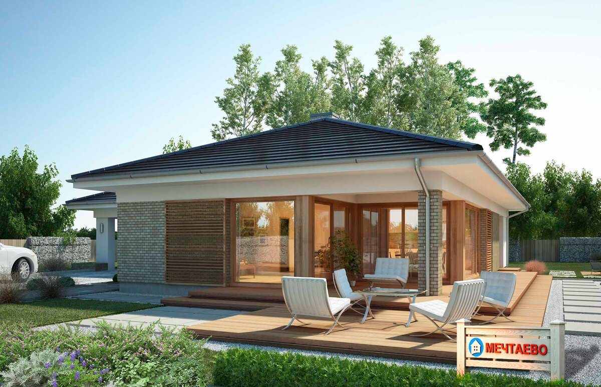 Одноэтажный дом в стиле лофт с панорамными окнами