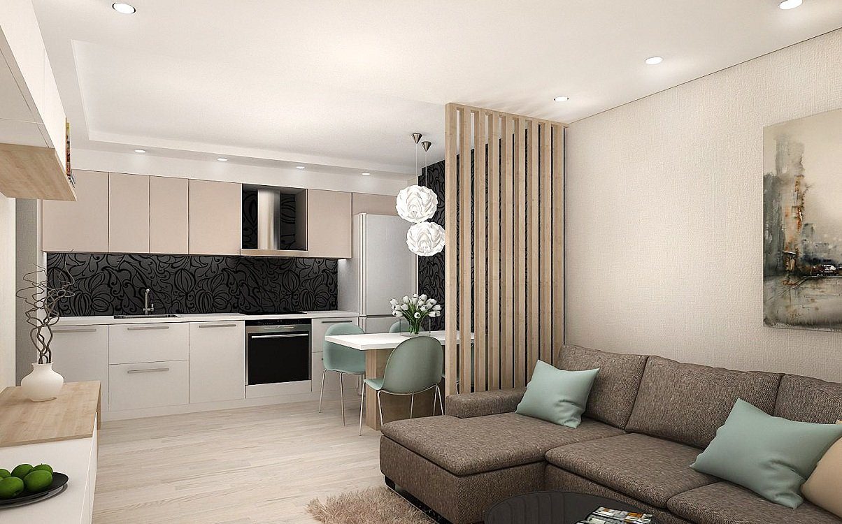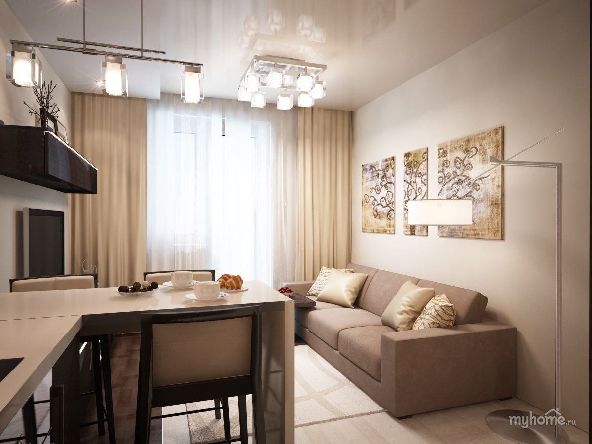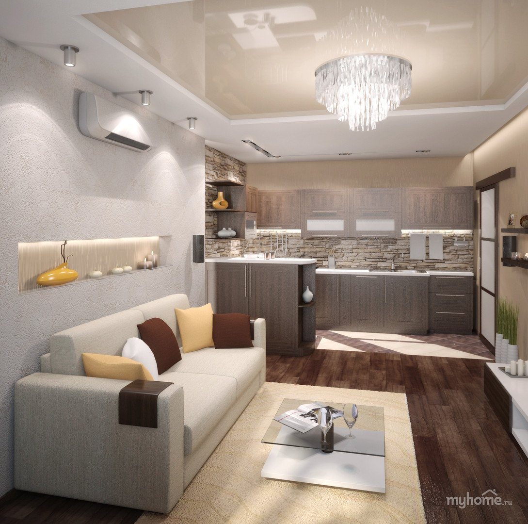 Кухня с гостинной 14кв м интерьер планировка прямоугольная