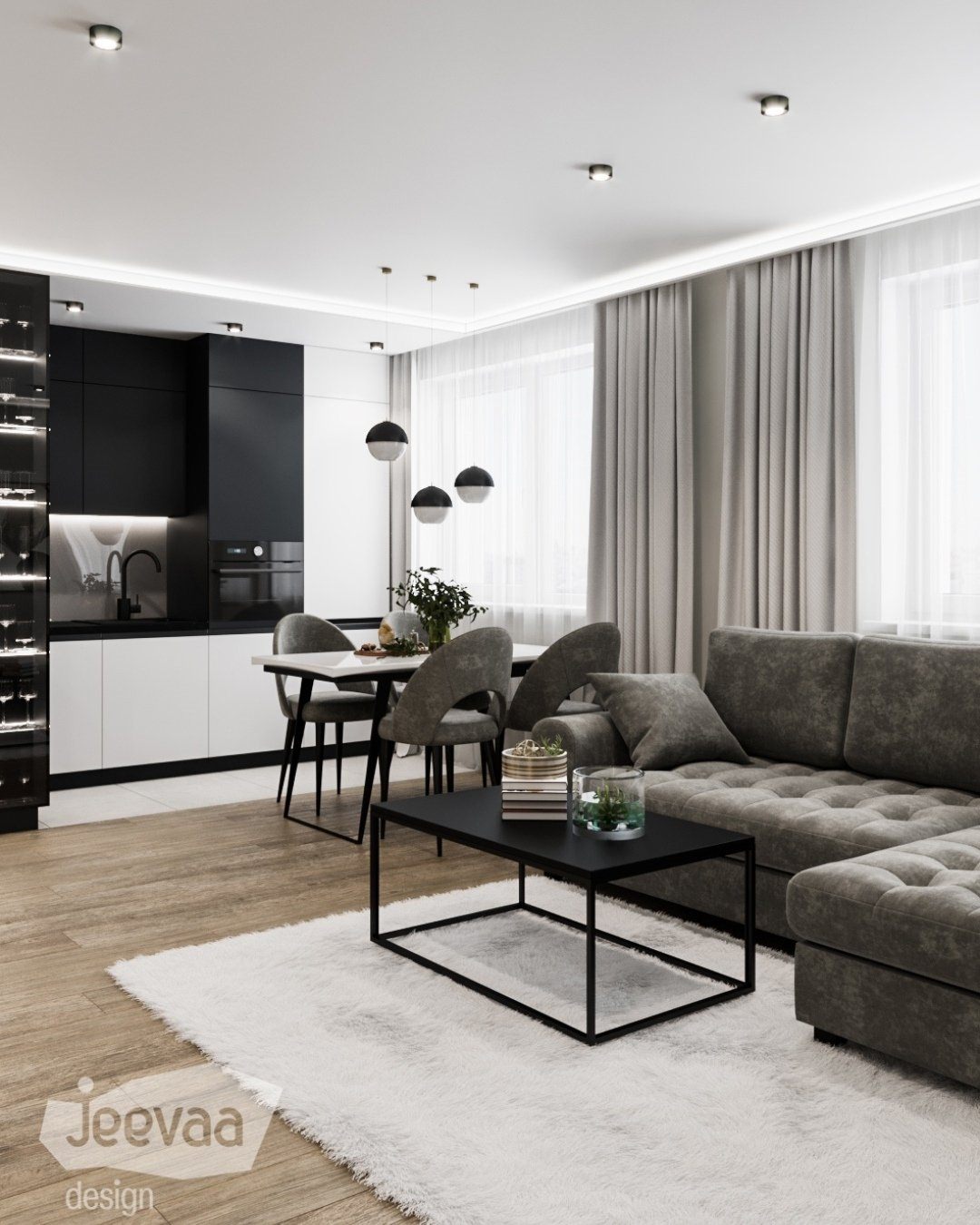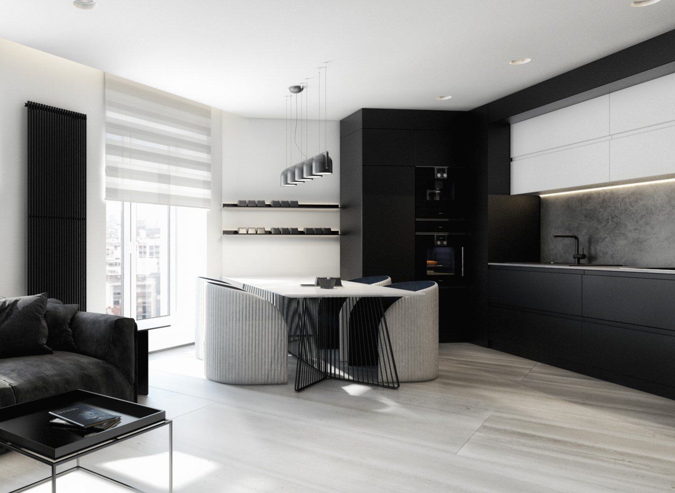 Кухня-гостиная в черно-белых тонах