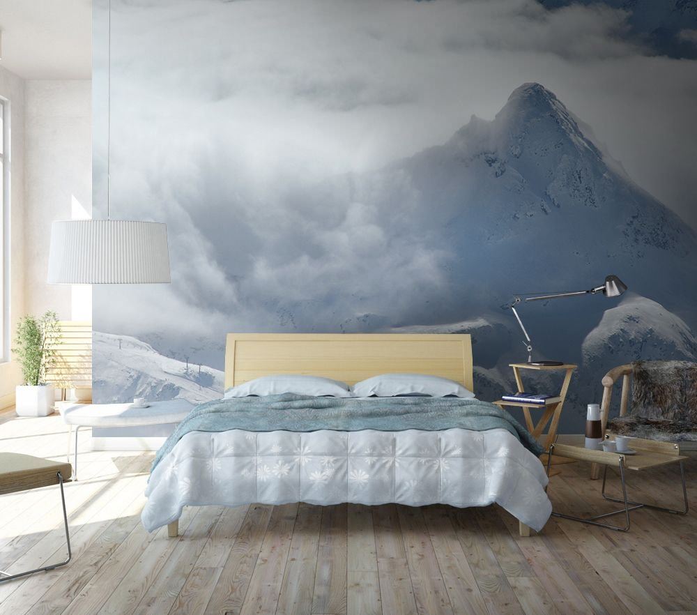 Горы на стене в спальне