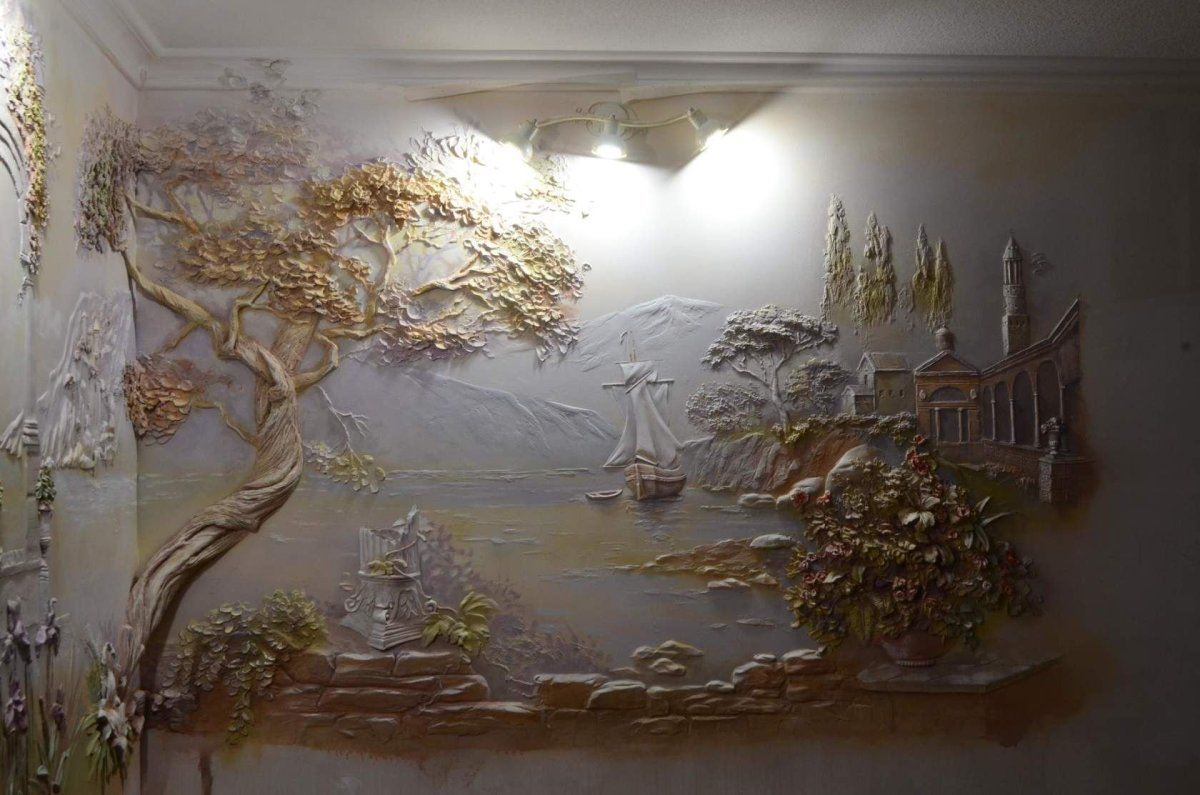 Скульптурная живопись на стене