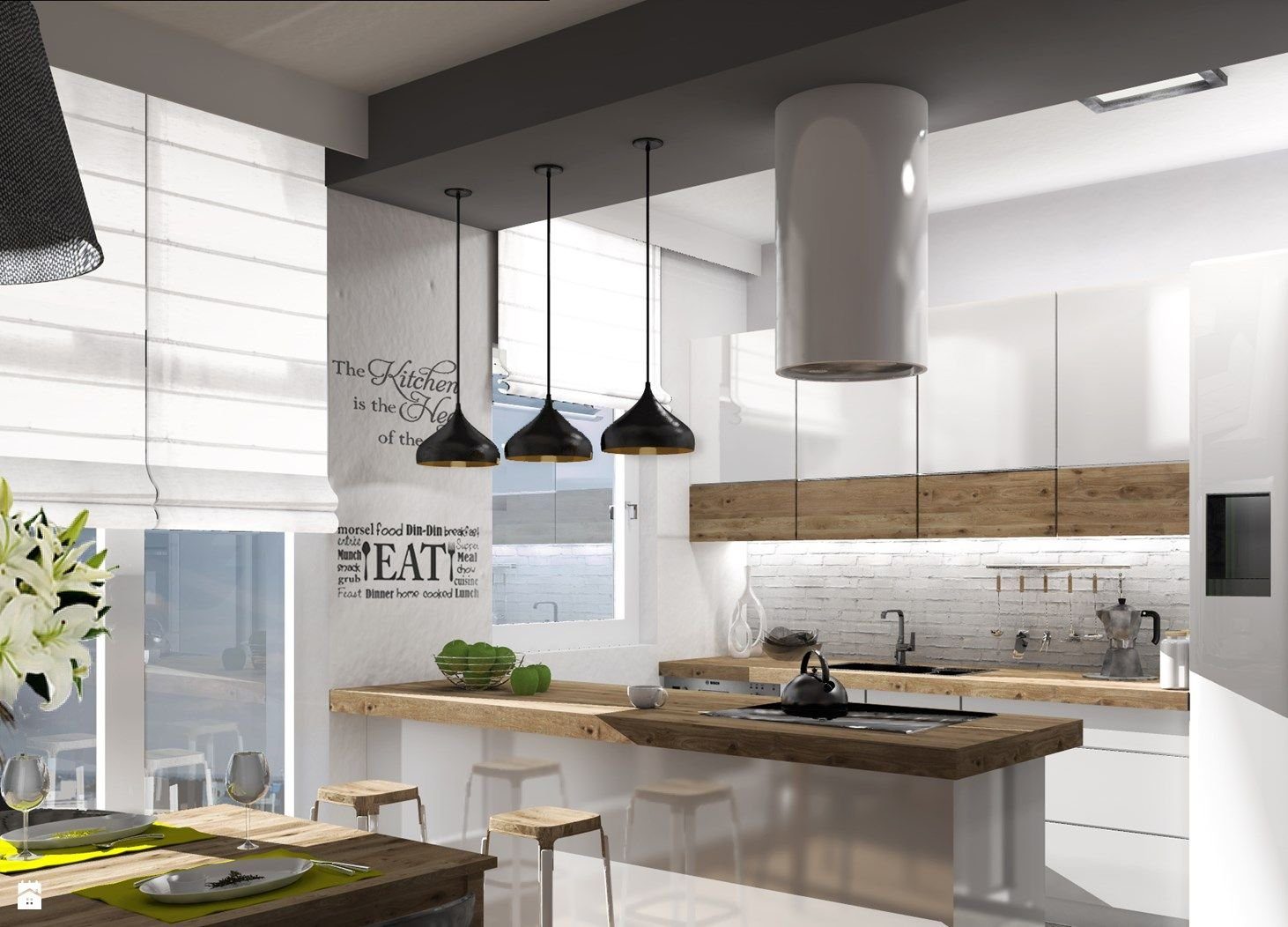 Цилиндрическая вытяжка для кухни в интерьере