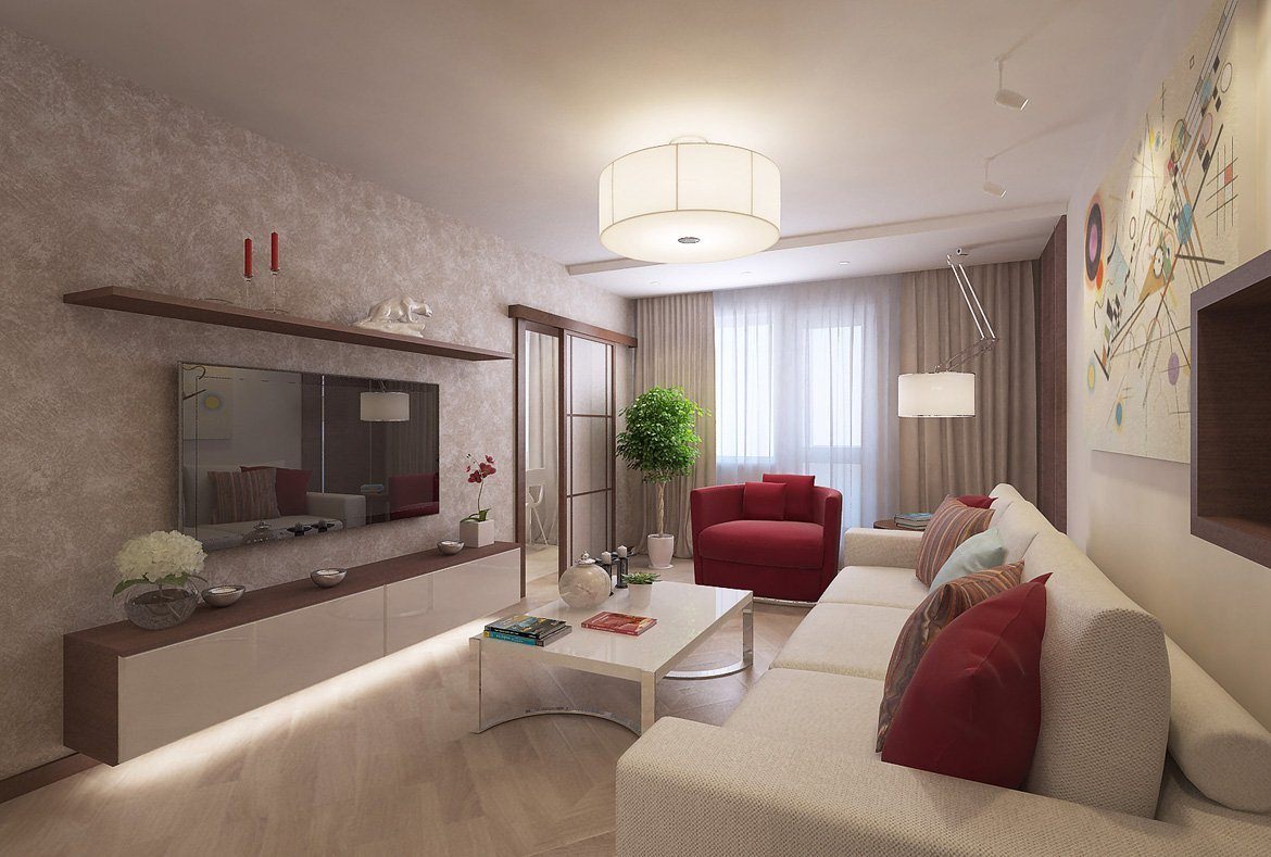 Гостиная 17 кв.м в трехкомнатной квартире в панельном доме