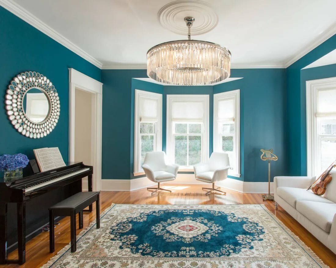 Интерьер с бирюзовым ковром