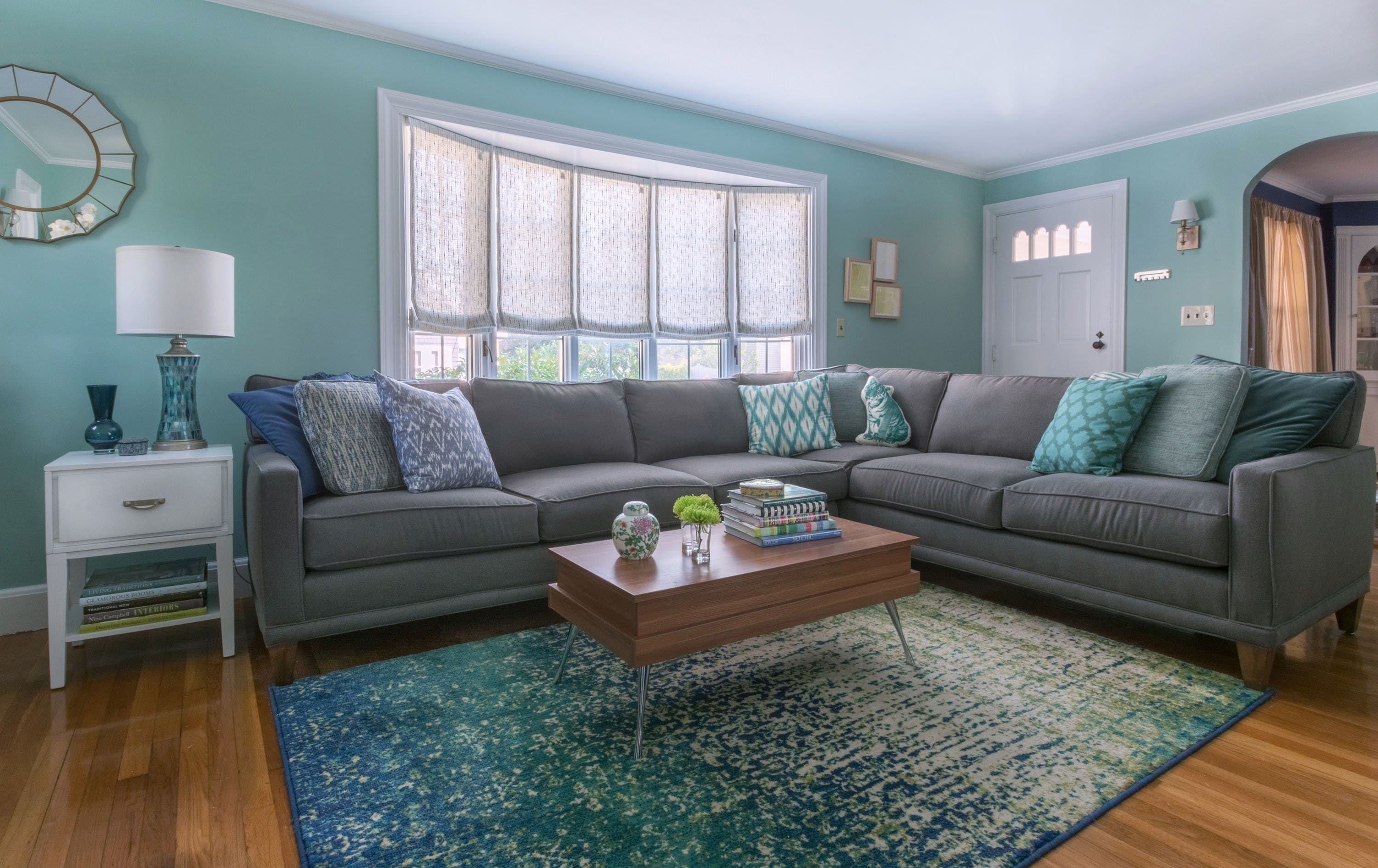 Гостиная с бирюзовым диваном
