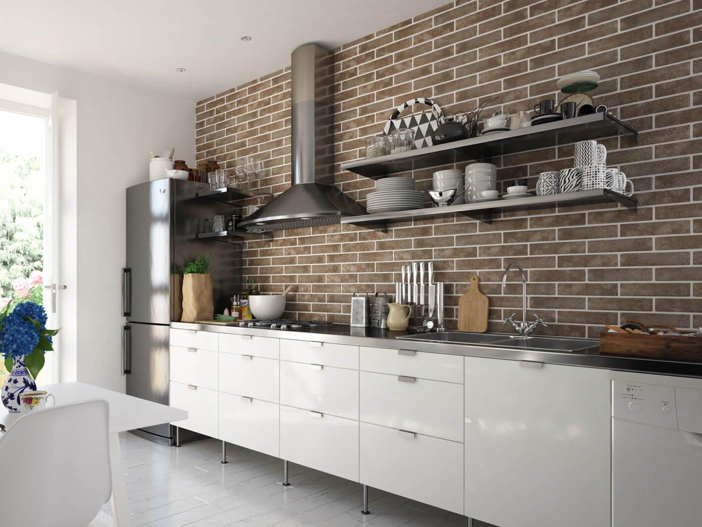 Кирпичная плитка на кухне