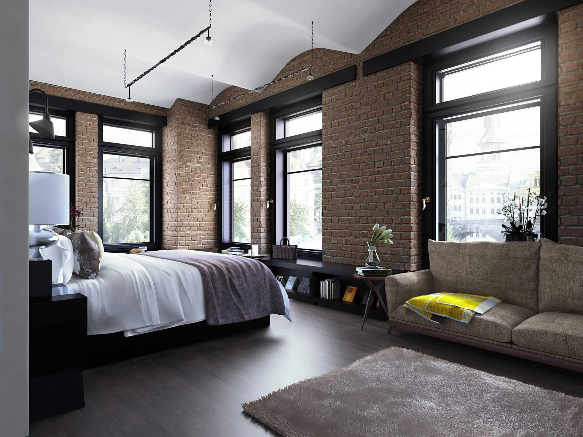 Спальня лофт с панорамными окнами